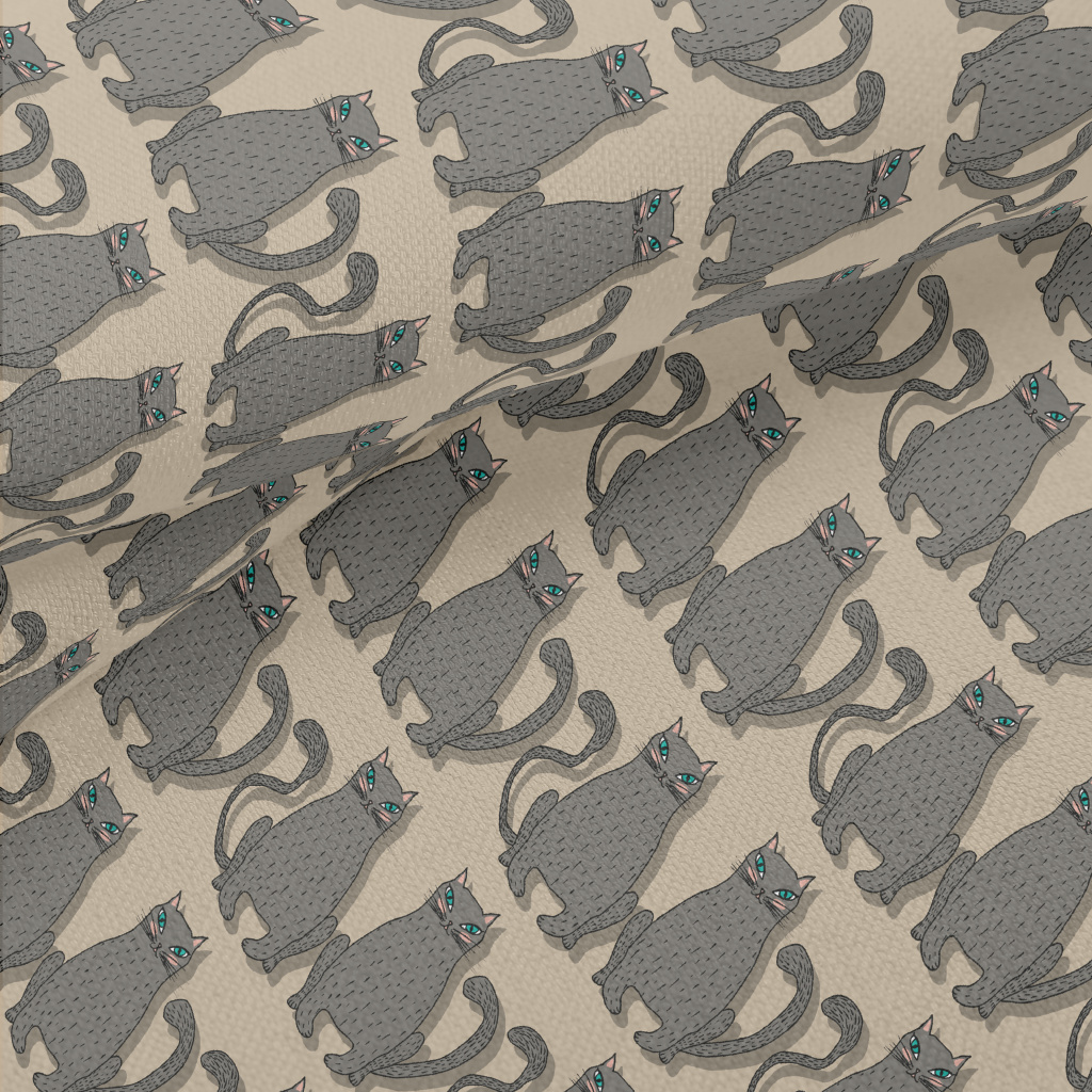 Hand Drawn Blue Eyed Cat Lightweight Performance Linen