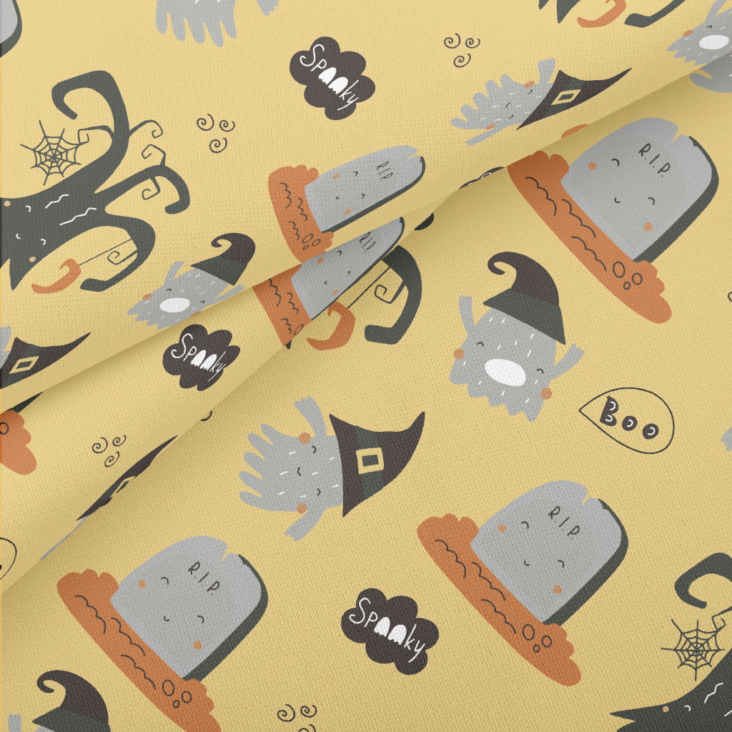 Cute Ghost And Tombstone Lightweight Cotton Poplin