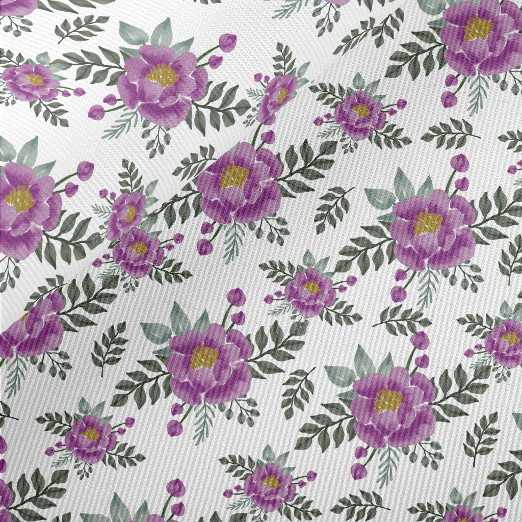 Watercolor Purple Roses Twill