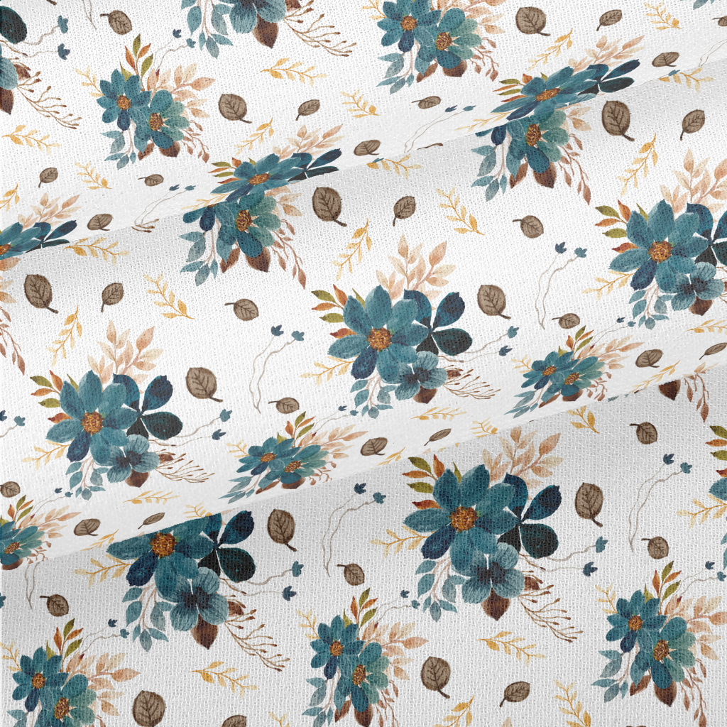 Blue Watercolor Flowers Chiffon