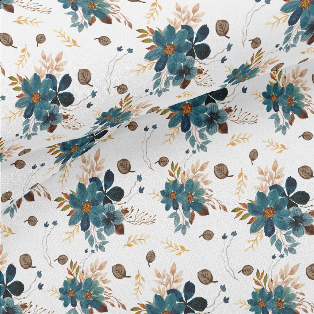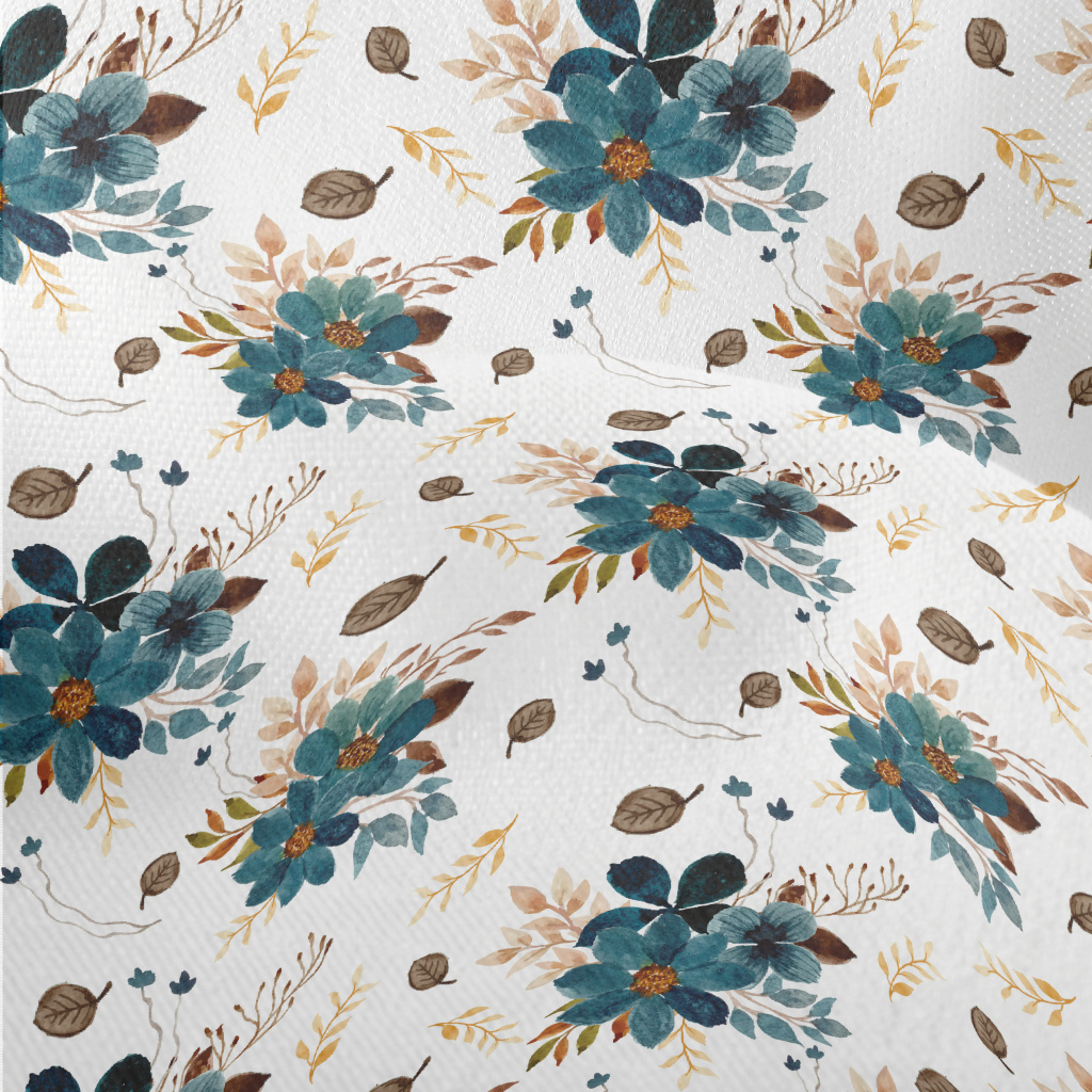 Blue Watercolor Flowers Lightweight Performance Linen