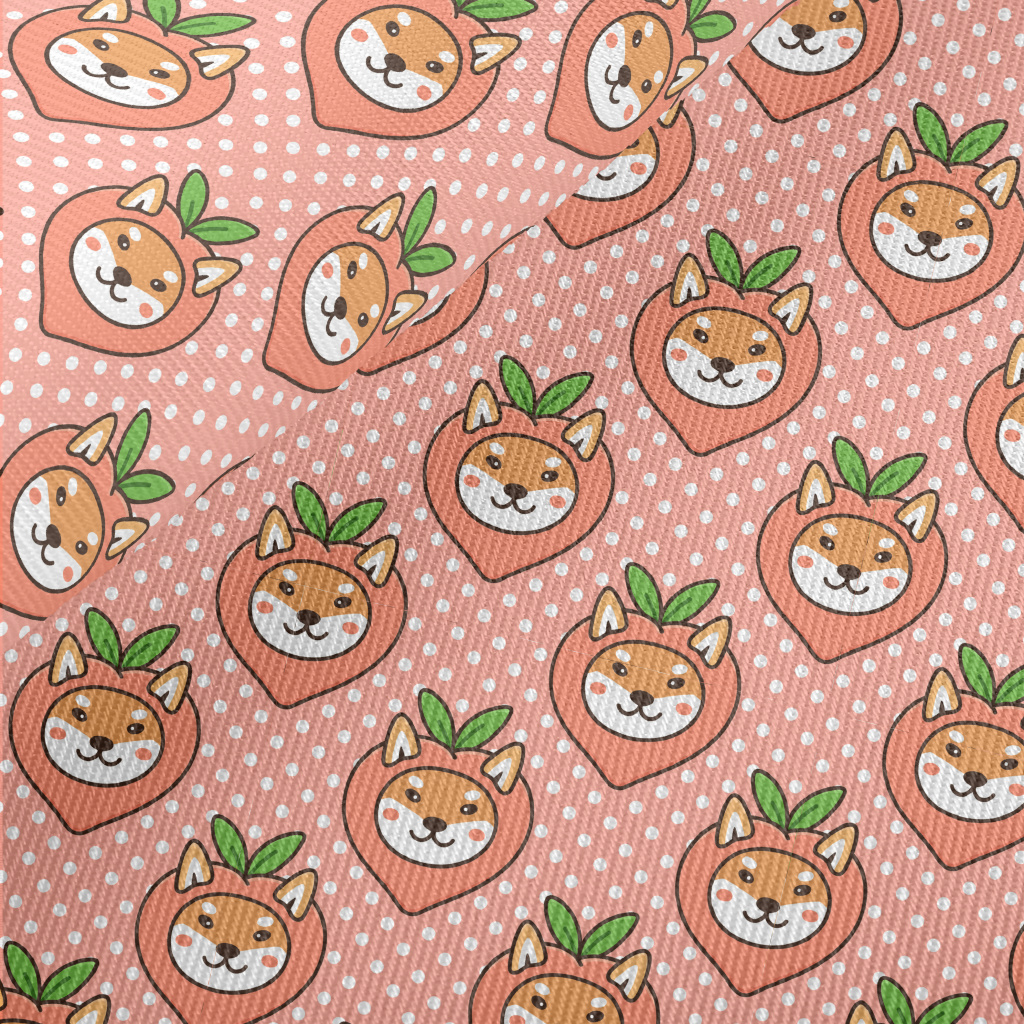 Peach Shiba Inu Midweight Cotton Poplin