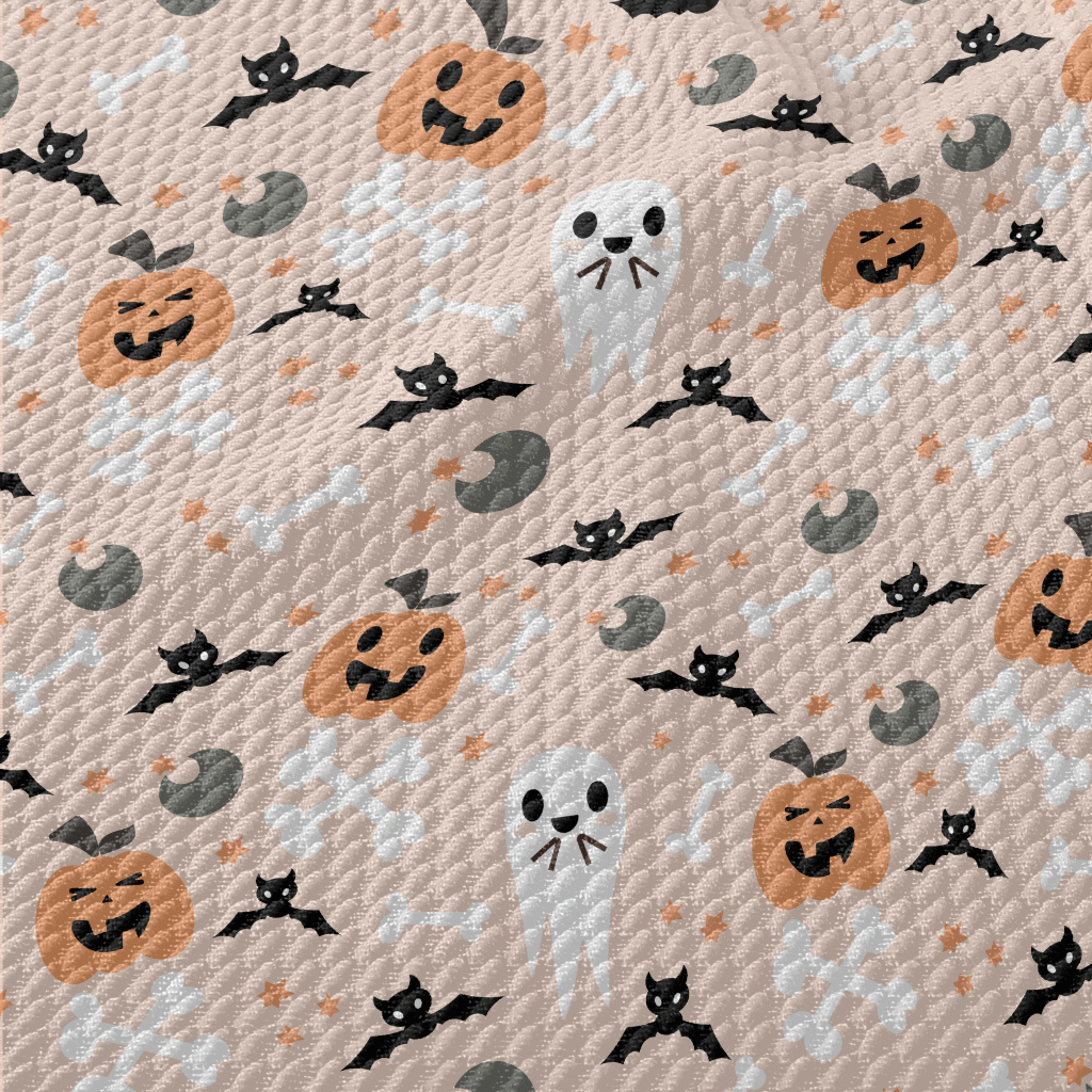 Playful Halloween Doodles Birdseye Piqué