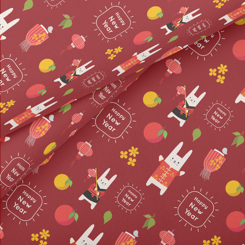 Chinese New Year Rabbit Lightweight Cotton Poplin