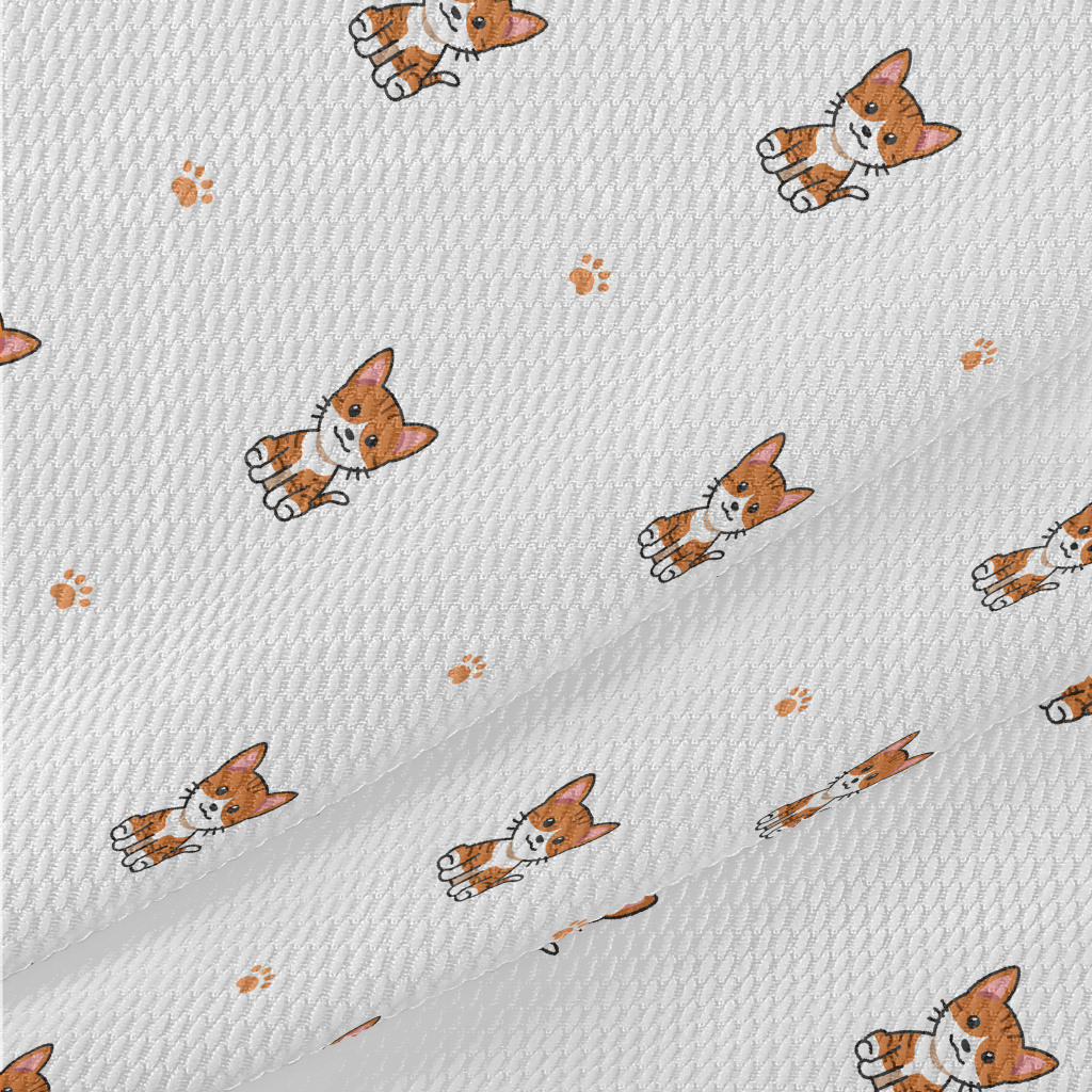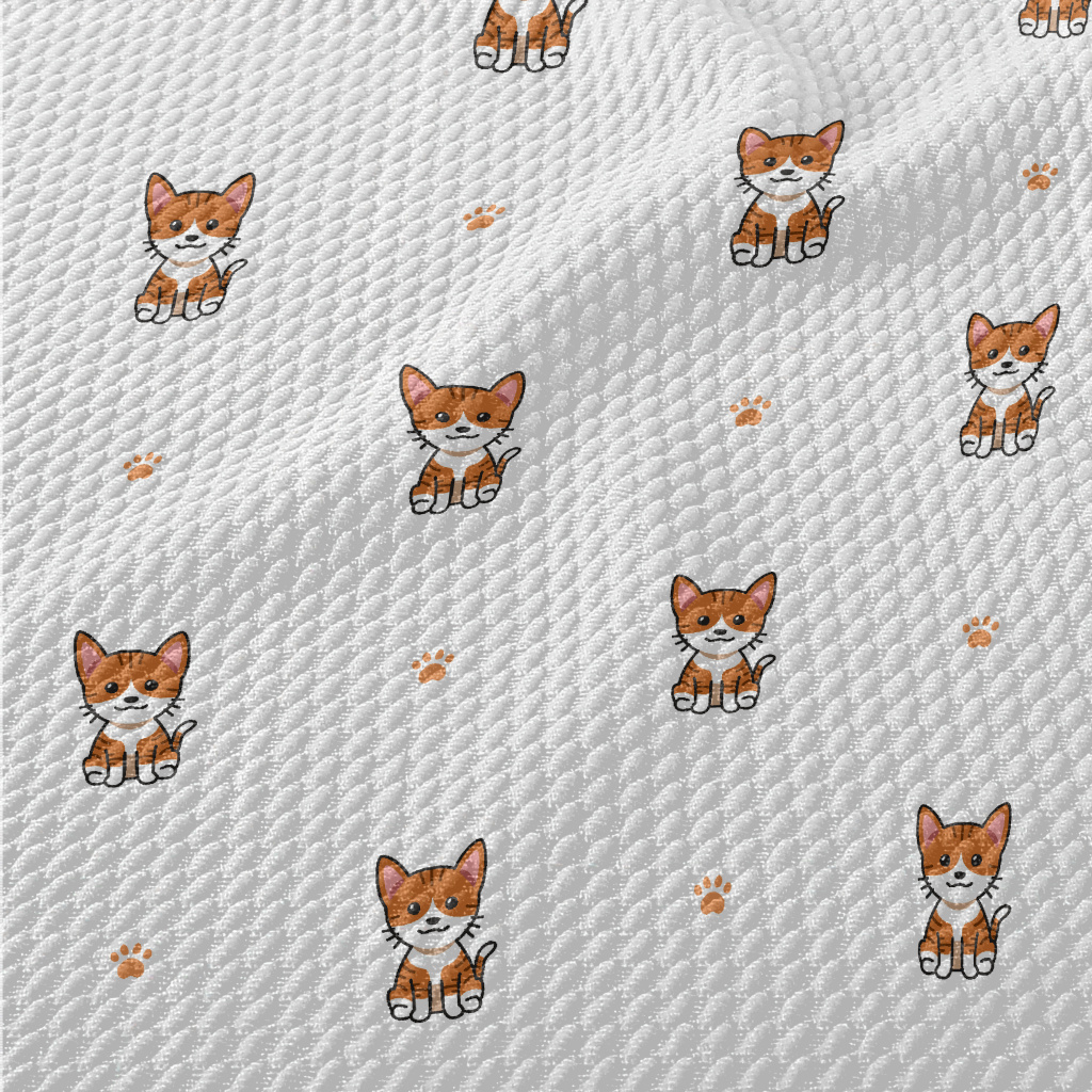Cartoon Tabby Cat Birdseye Piqué