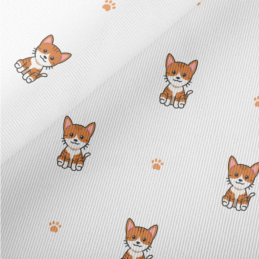 Cartoon Tabby Cat Midweight Cotton Poplin