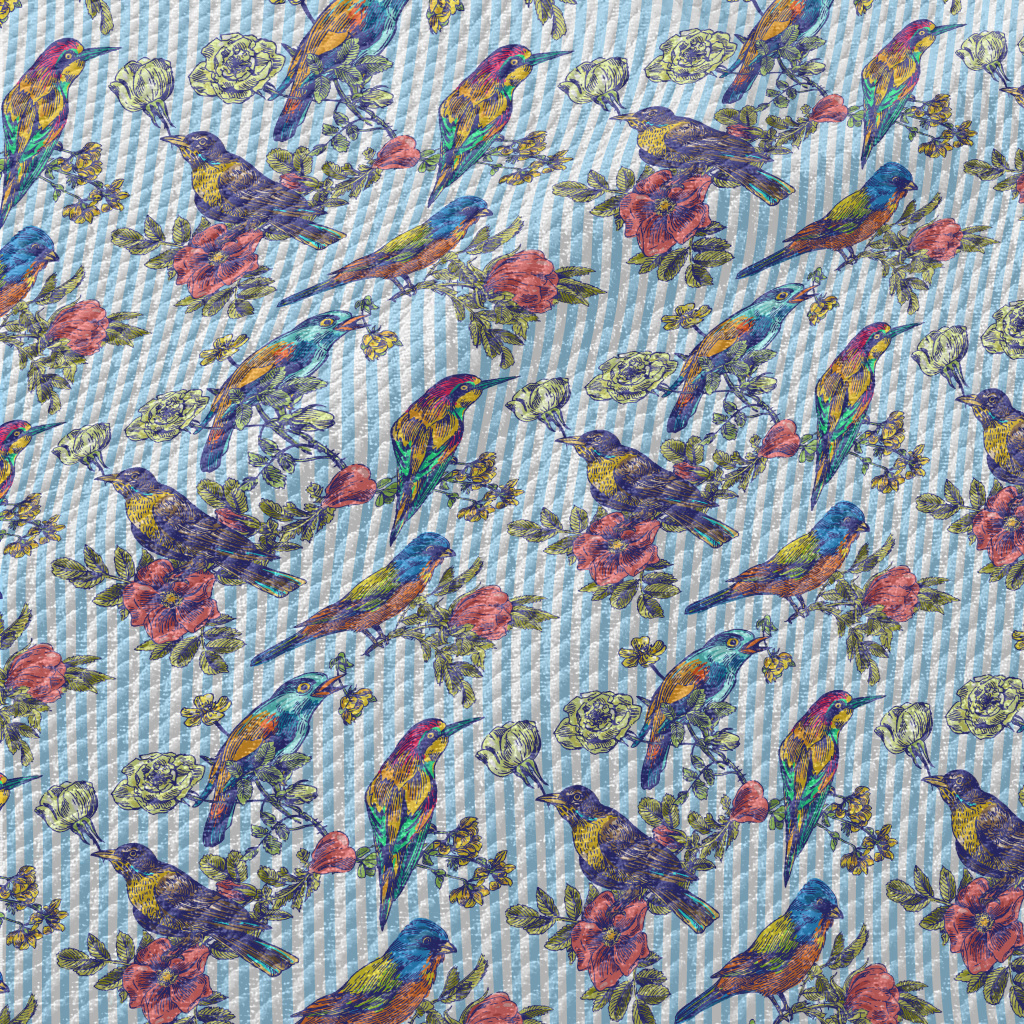Colorful Bird Courtship Birdseye Piqué