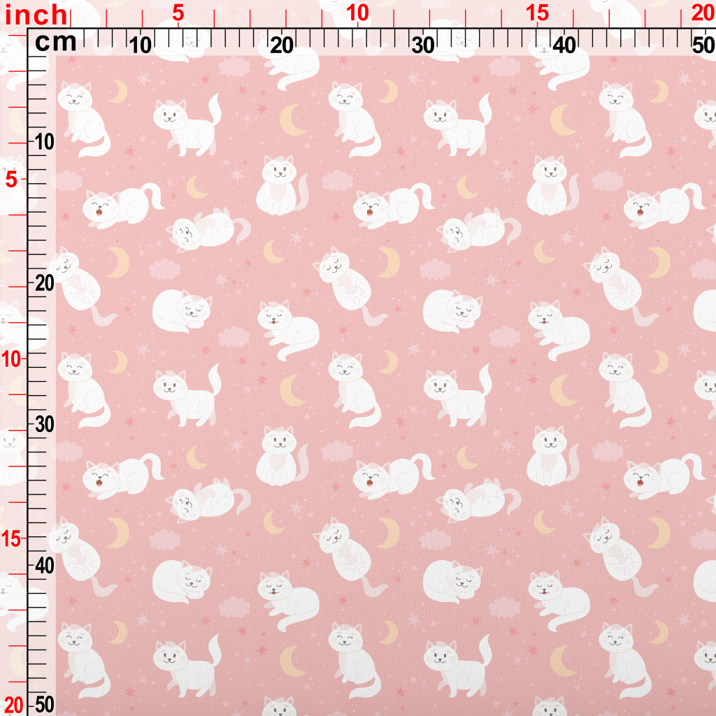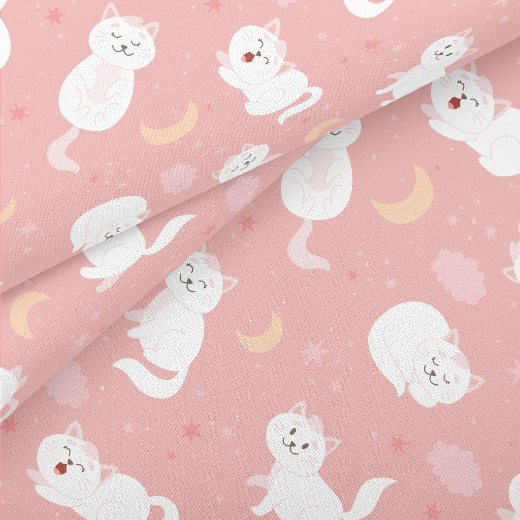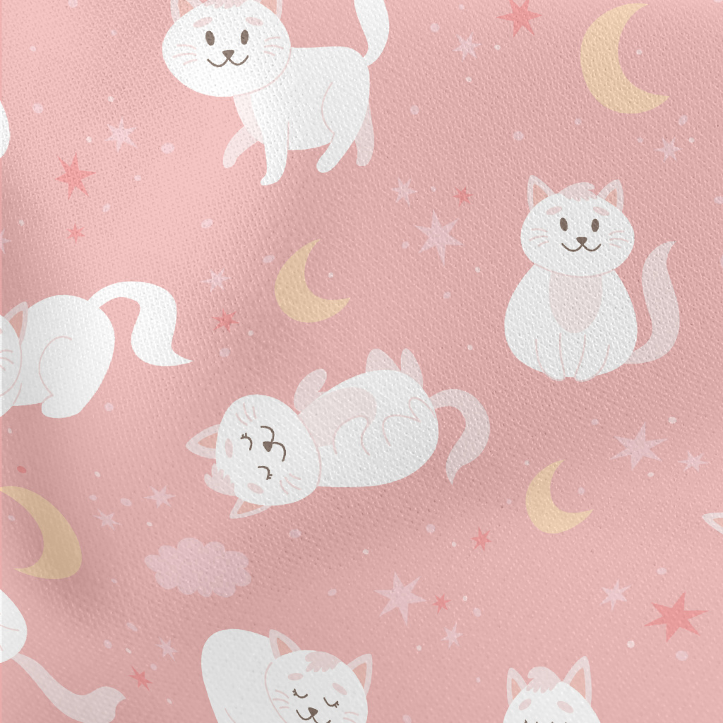 Cartoon Elegant White Cat Lightweight Cotton Poplin