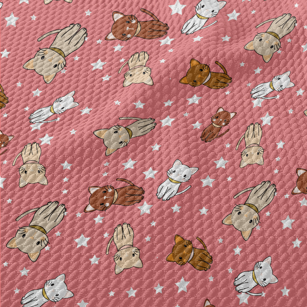 Cartoon Cat With Stars Birdseye Piqué