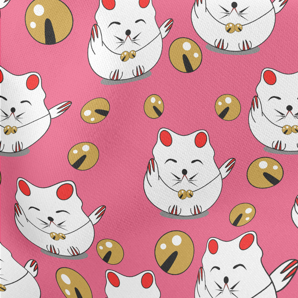 Japanese Lucky Cat Lightweight Cotton Poplin
