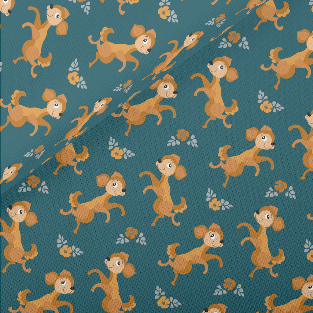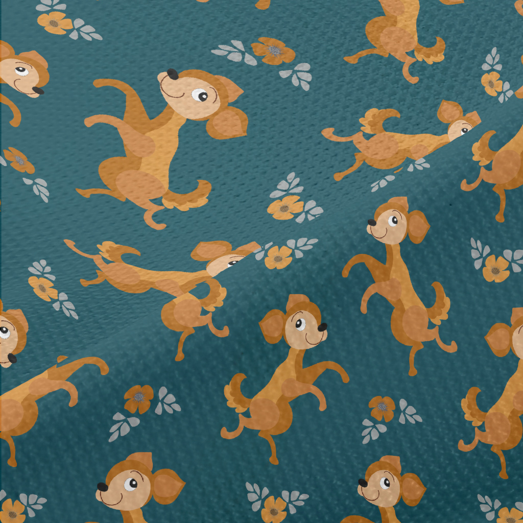 Dancing Puppy With Flowers Piqué