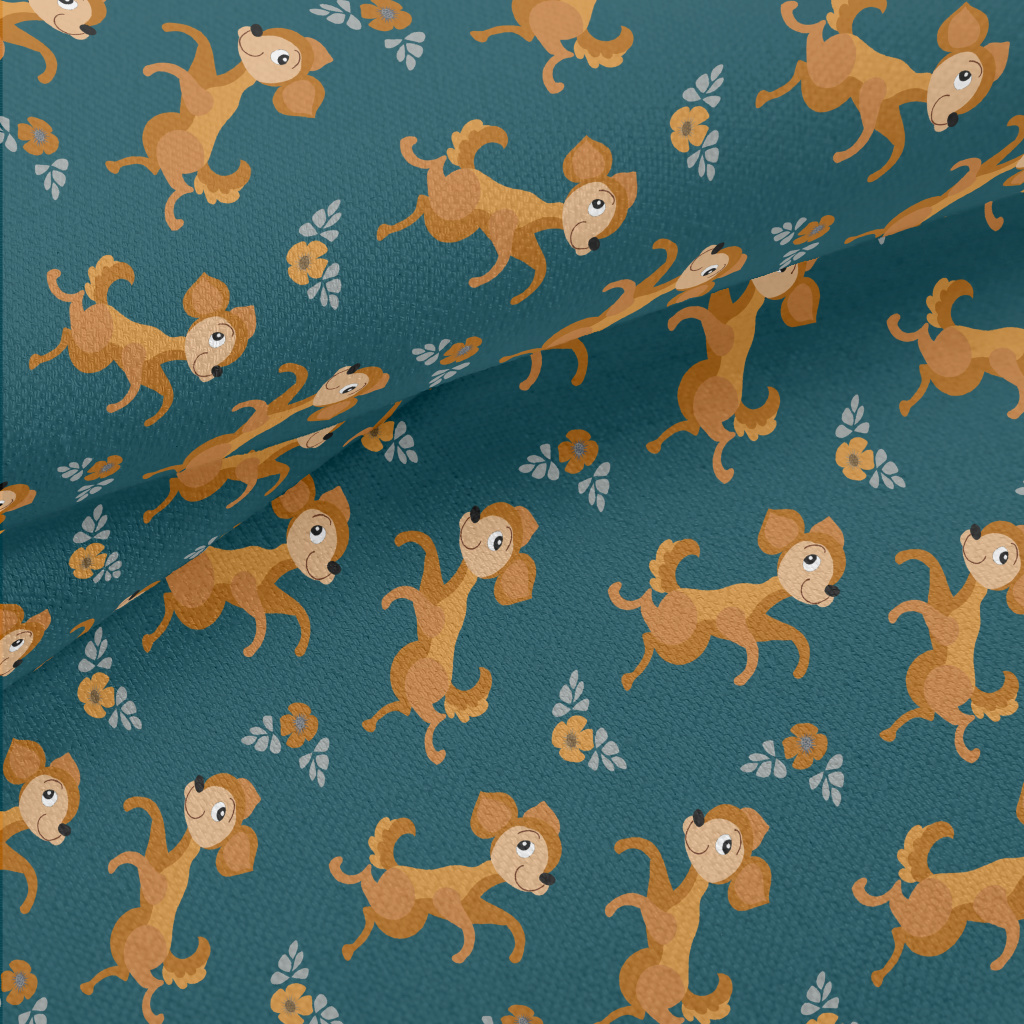 Dancing Puppy With Flowers Lightweight Performance Linen