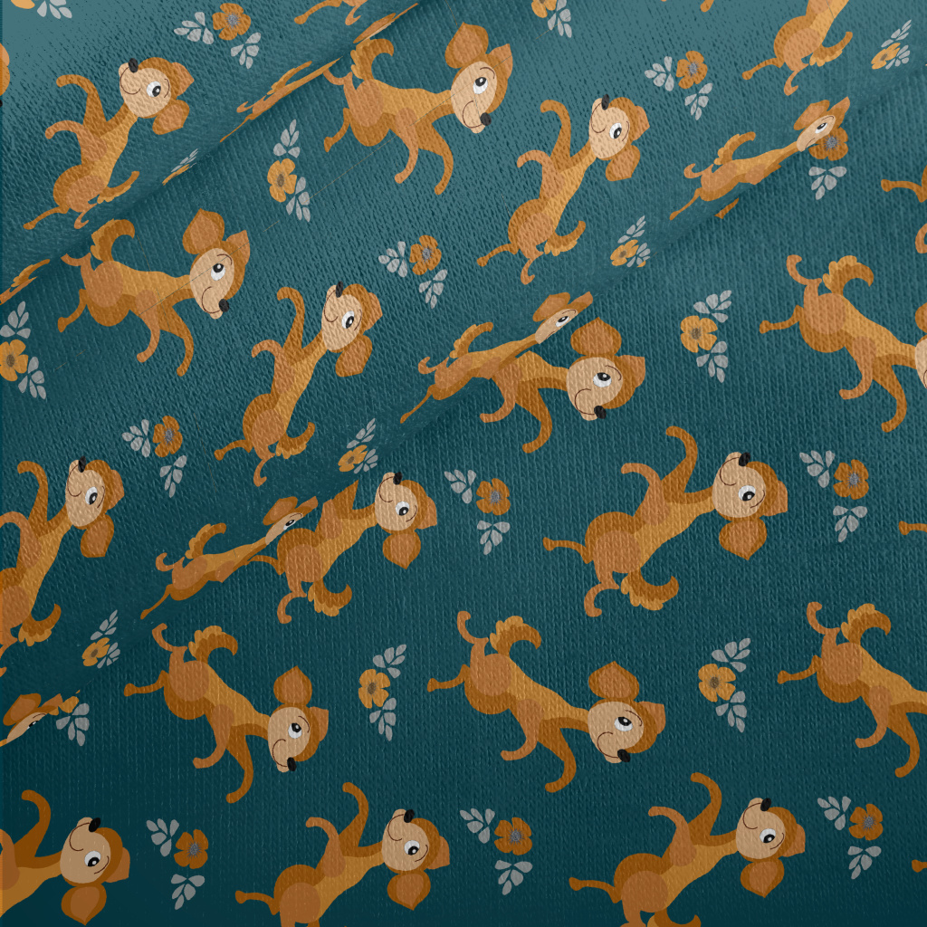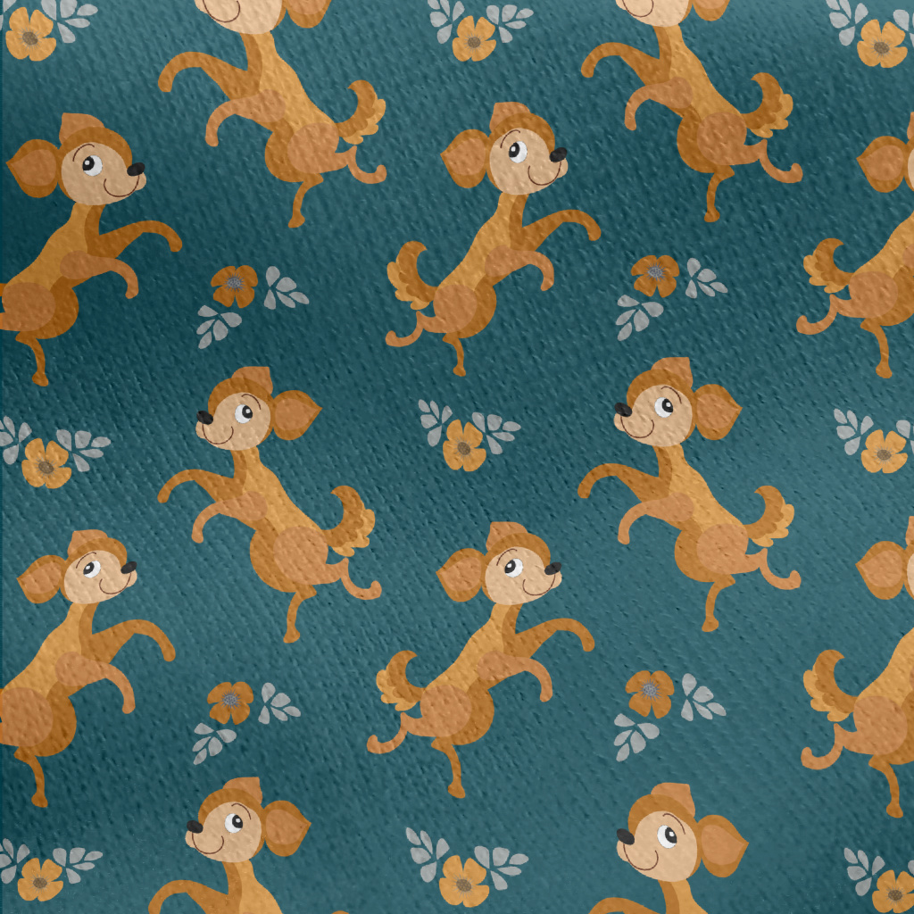 Dancing Puppy With Flowers Jersey Backed Fleece