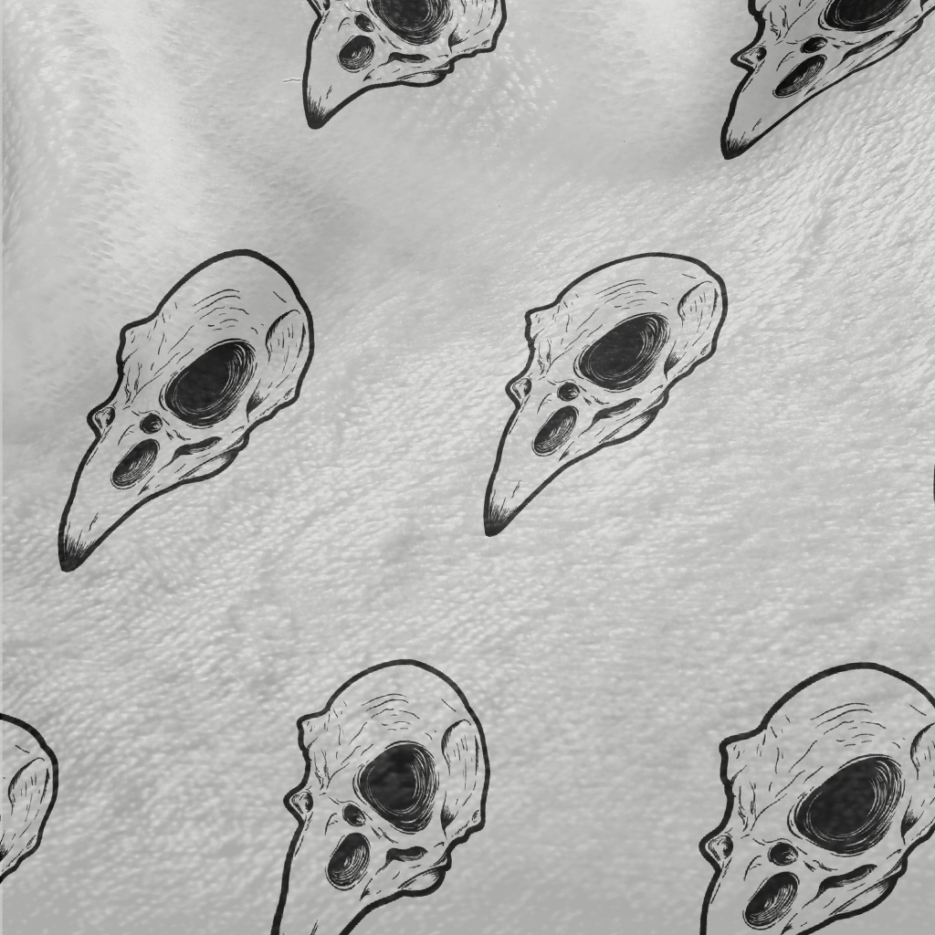 Hand Drawn Bird Skulls Minky