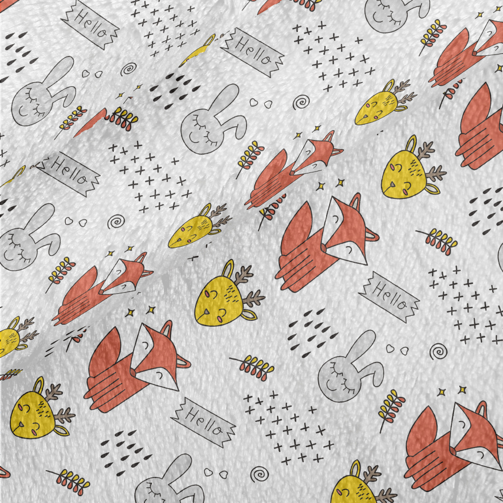 Hand Drawn Happy Animals Minky