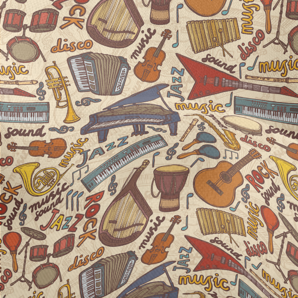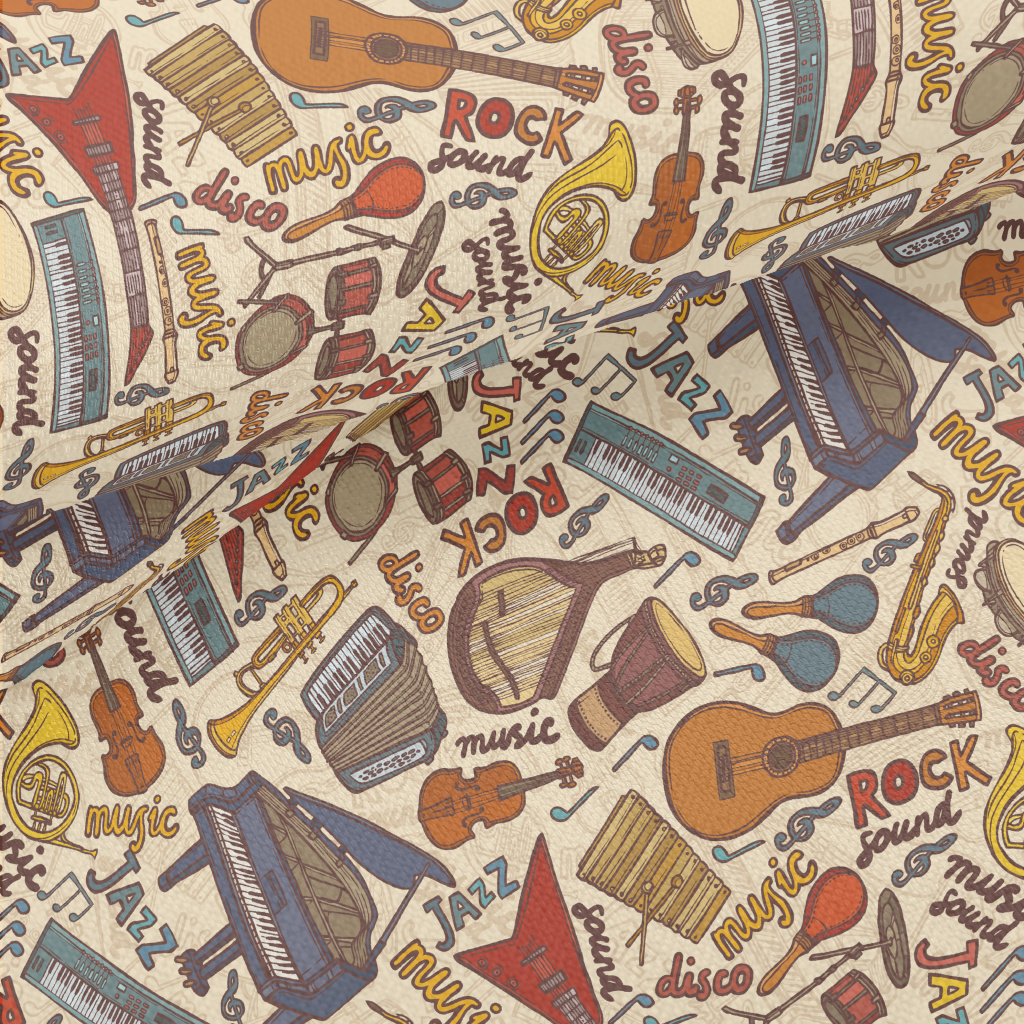 Hand Drawn Musical Instruments Lightweight Performance Linen