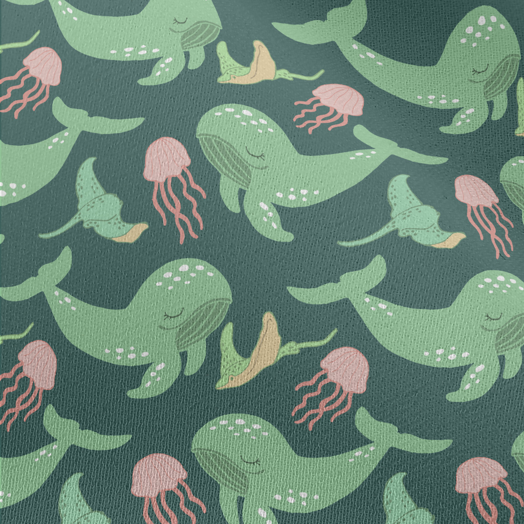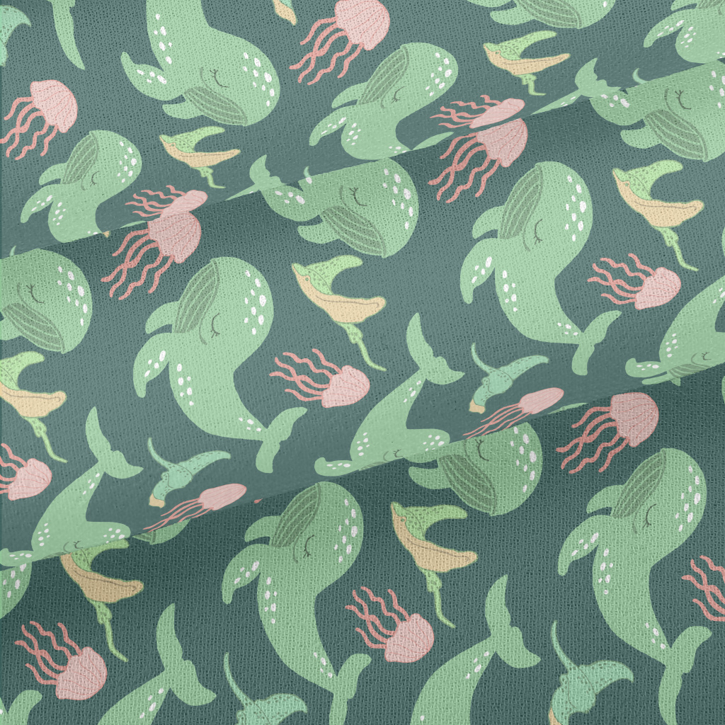 Green Whale Pink Jellyfish Chiffon