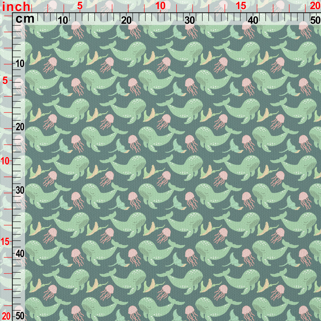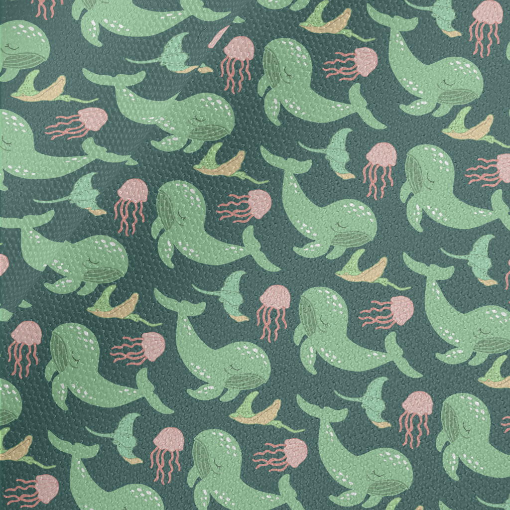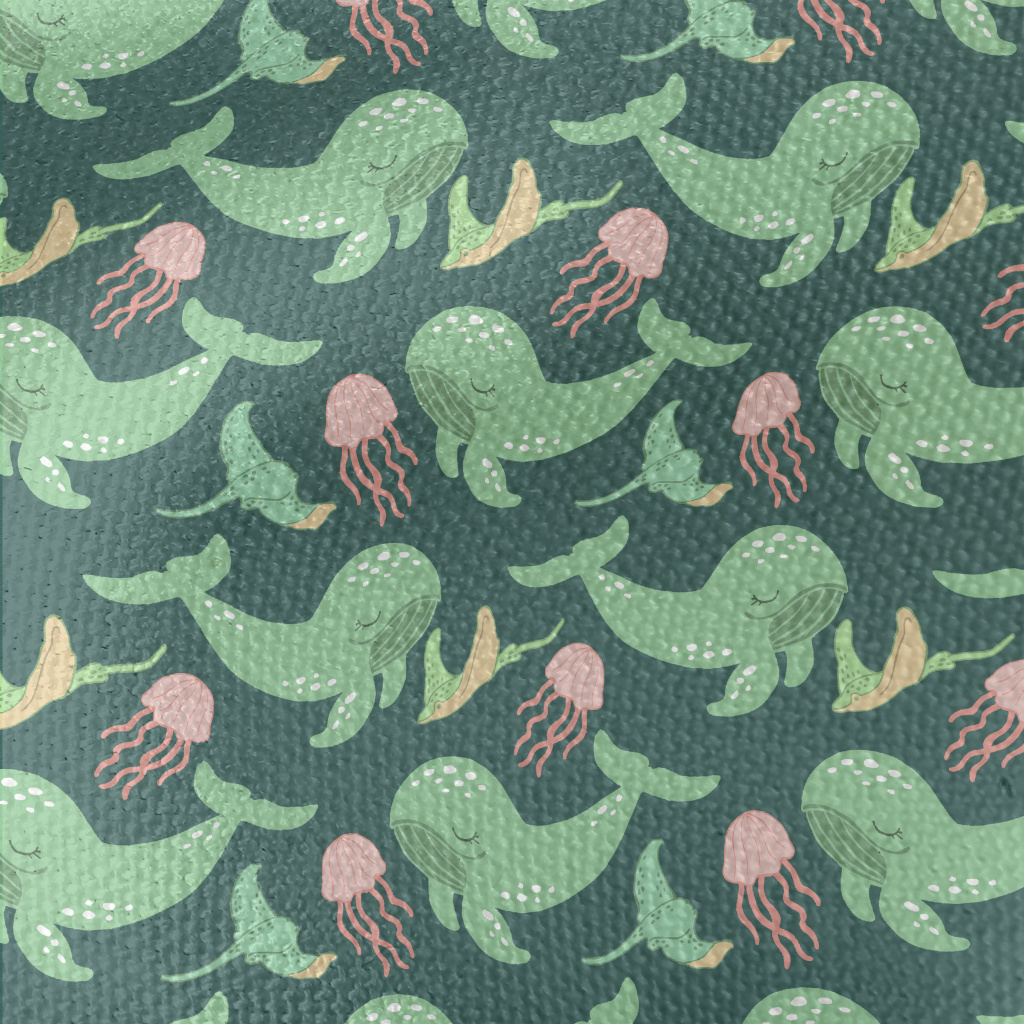 Green Whale Pink Jellyfish Waterproof Canvas