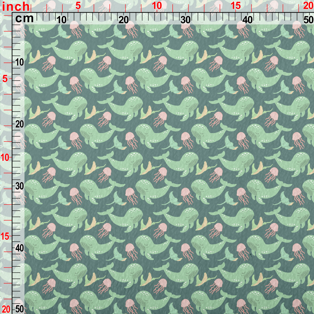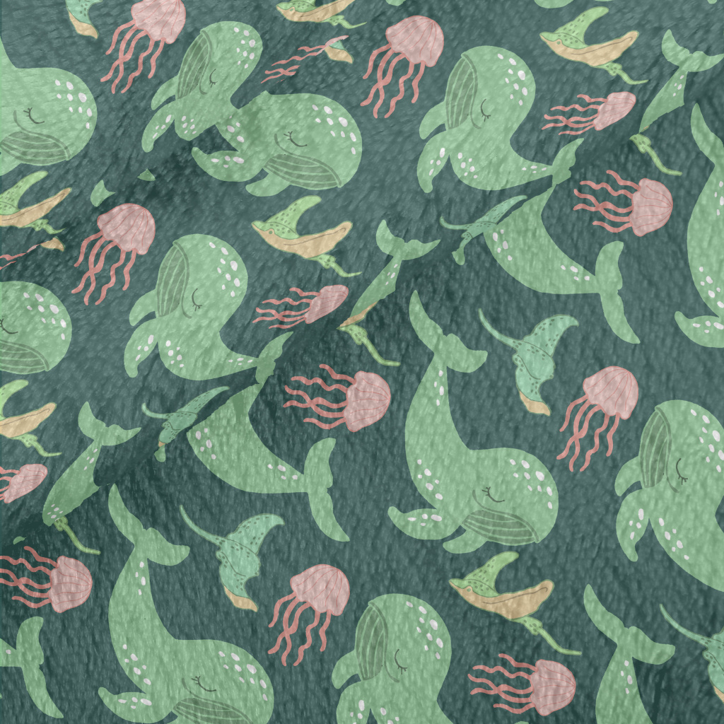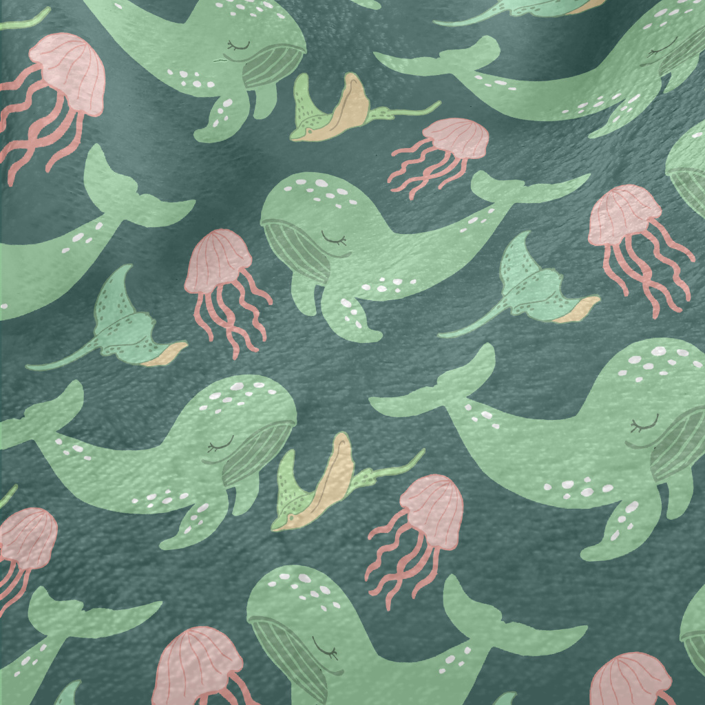 Green Whale Pink Jellyfish Minky