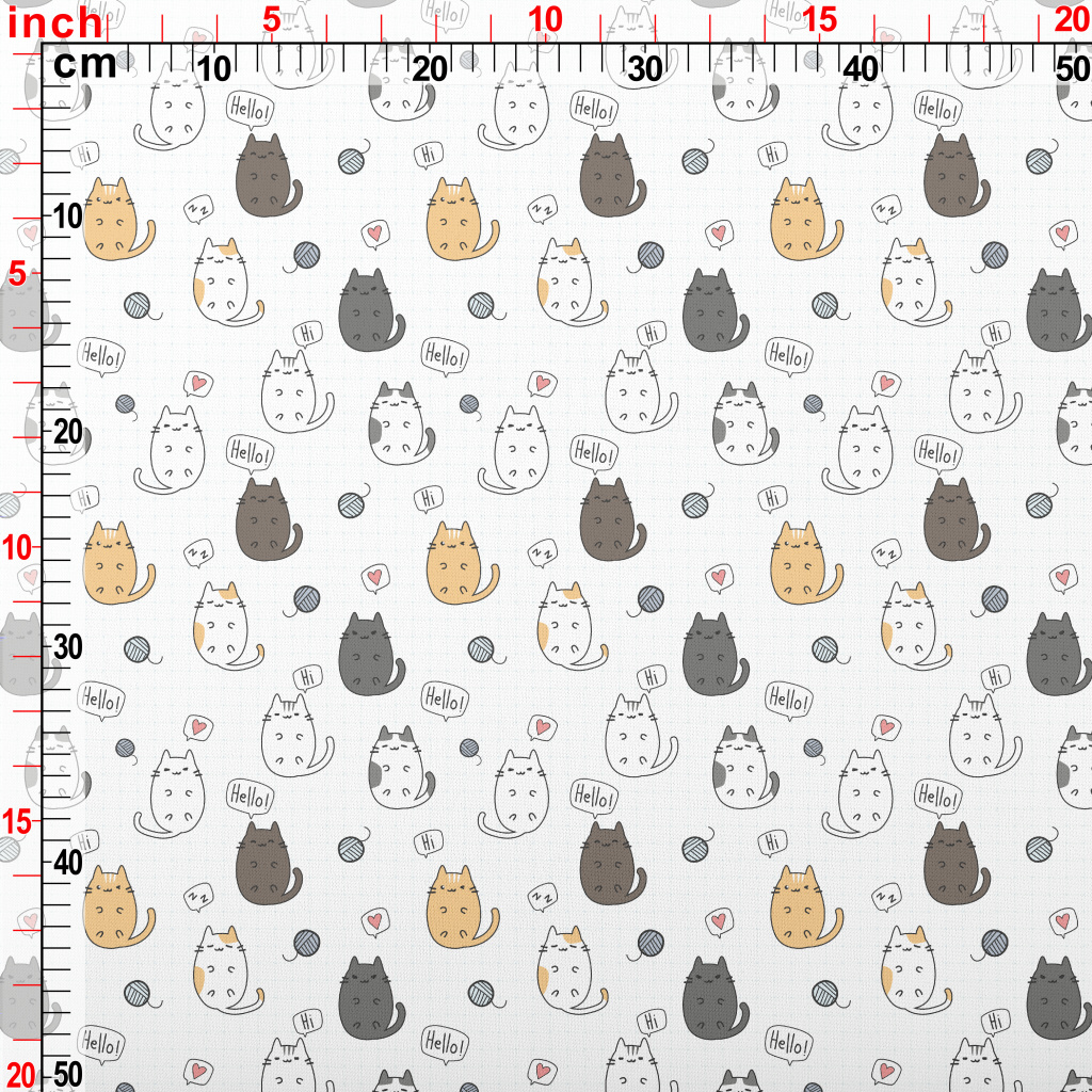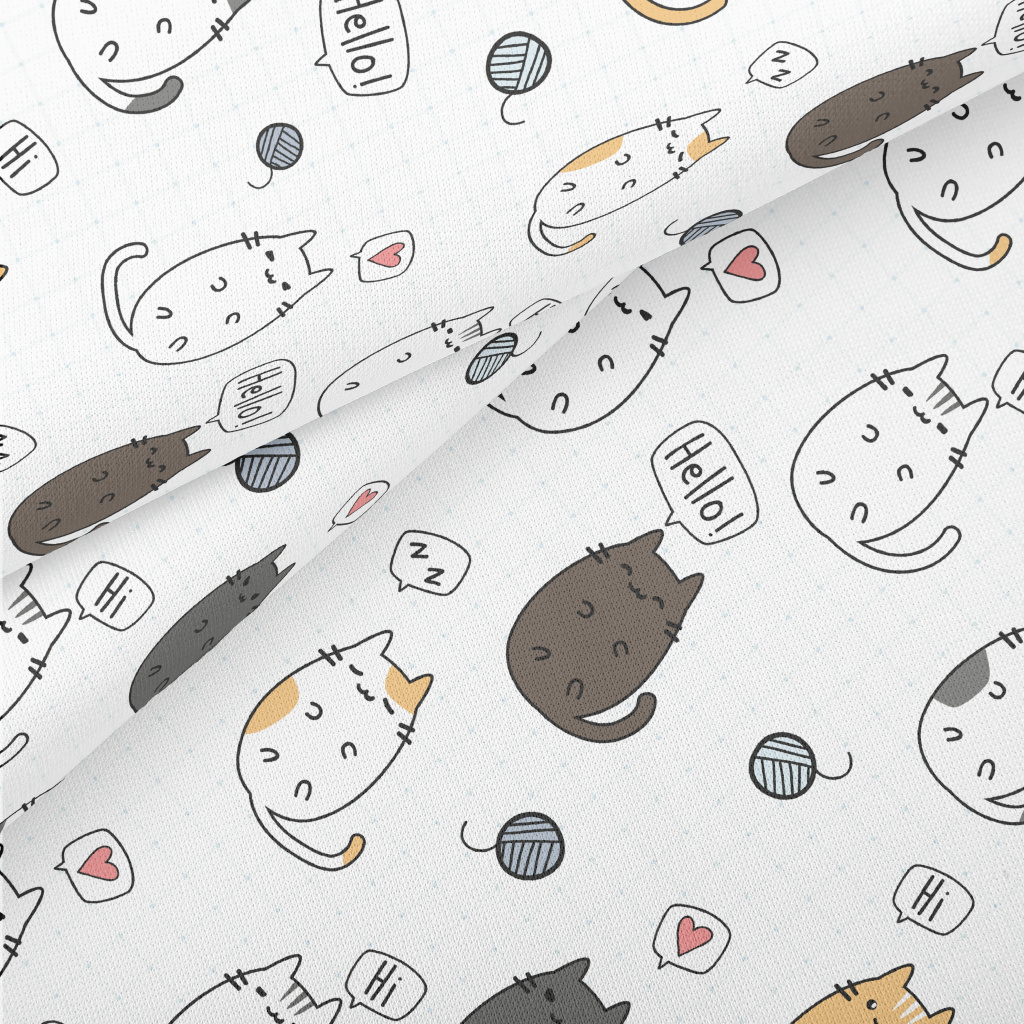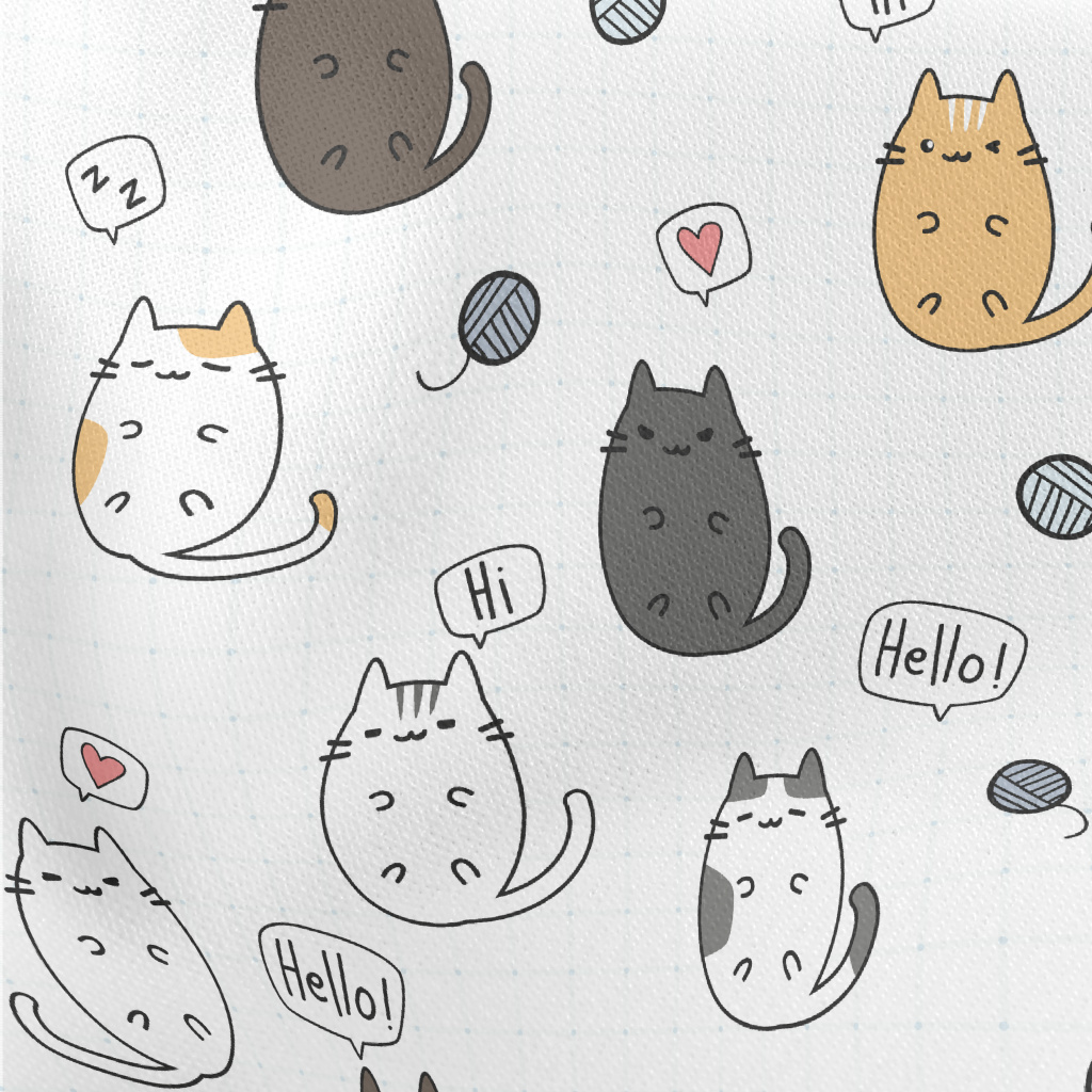 Cute Cartoon Kitten Lightweight Cotton Poplin
