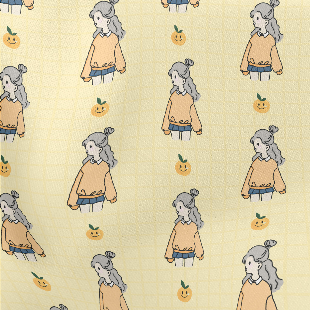 Cute Girl Illustration Lightweight Cotton Poplin