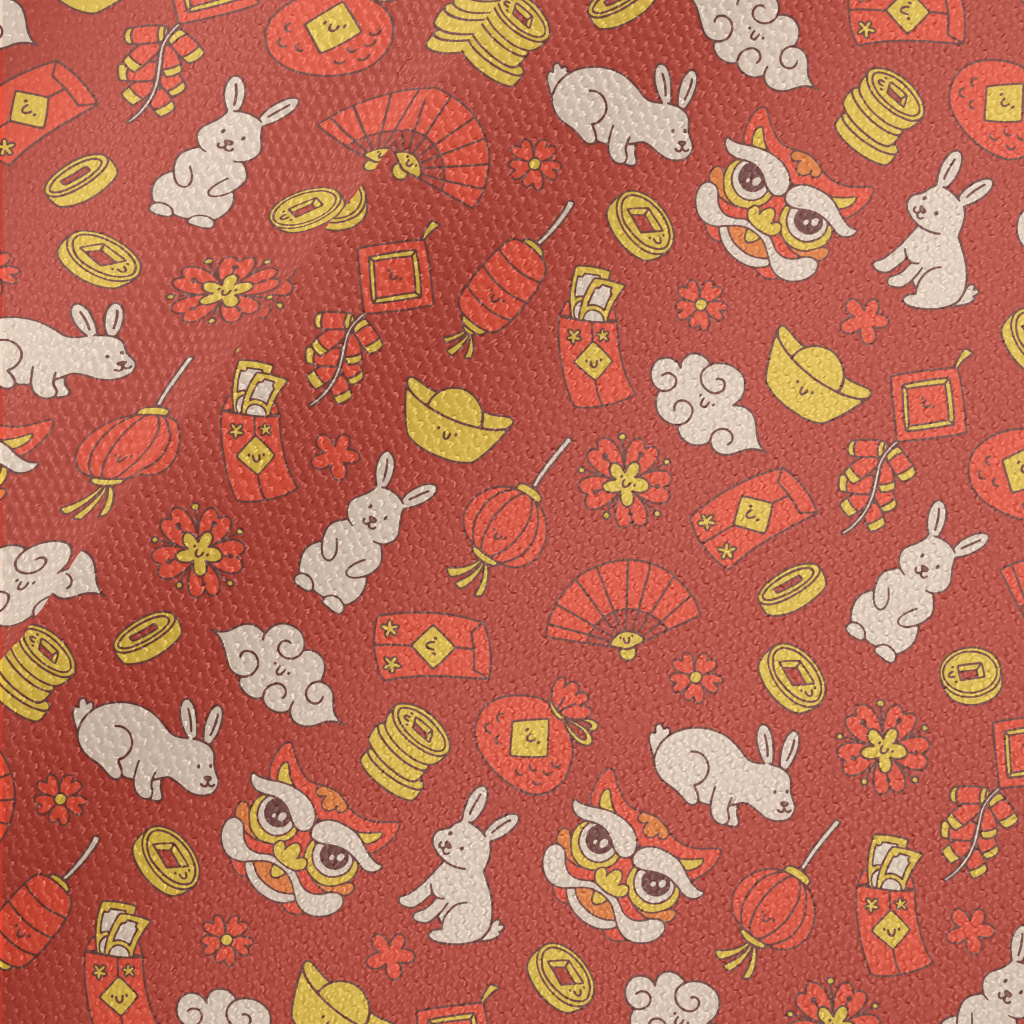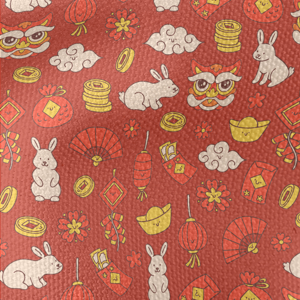 Cute Rabbit Year Illustration Waterproof Canvas