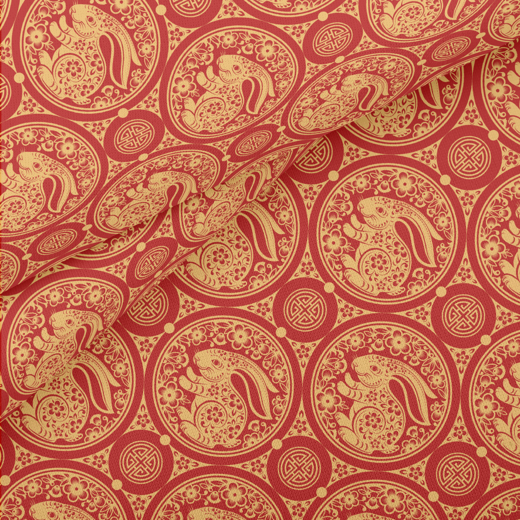 Chinese Paper-cut Art Rabbit Lightweight Cotton Poplin