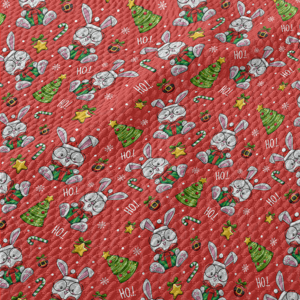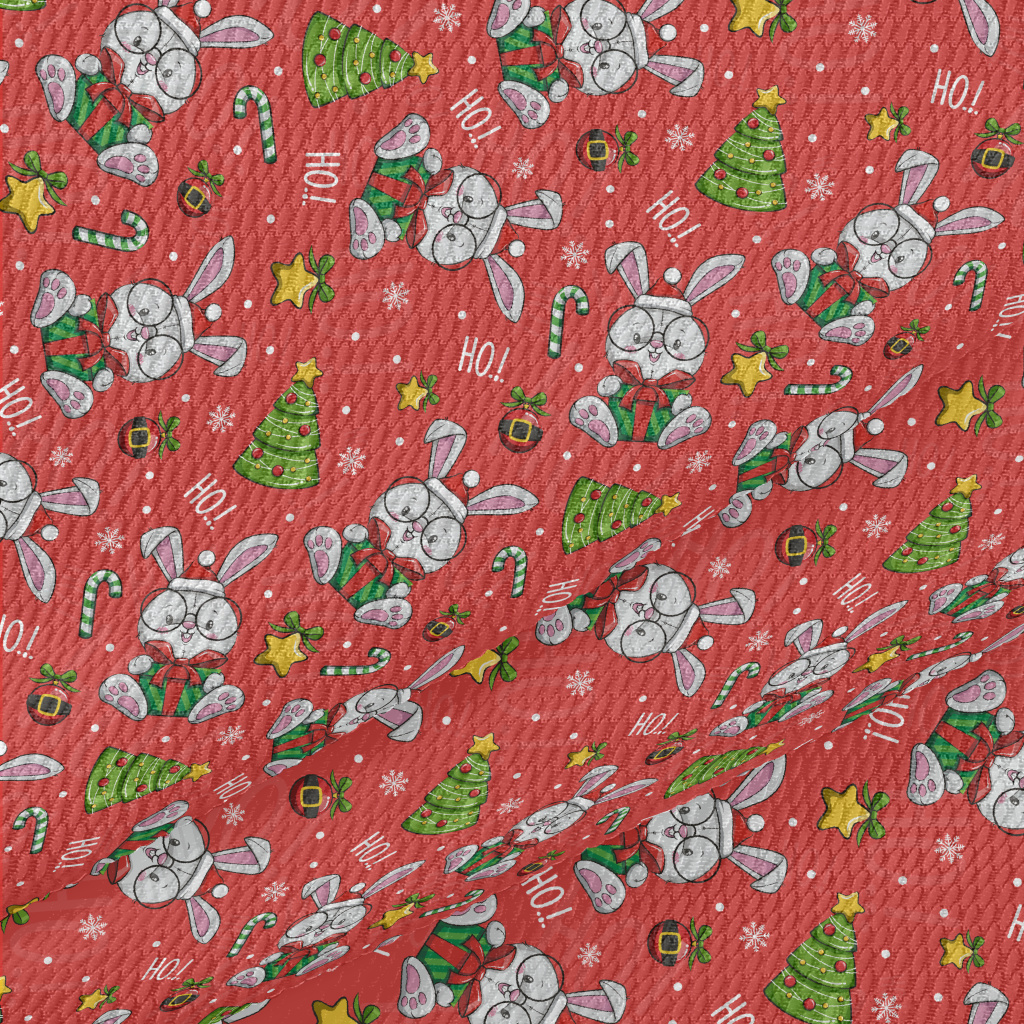 Cartoon Christmas Rabbit Illus Birdseye Piqué