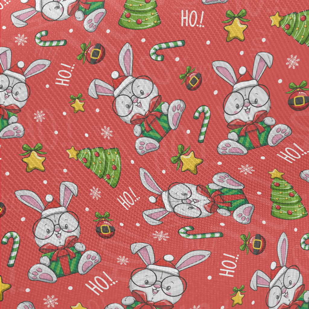 Cartoon Christmas Rabbit Illus Twill