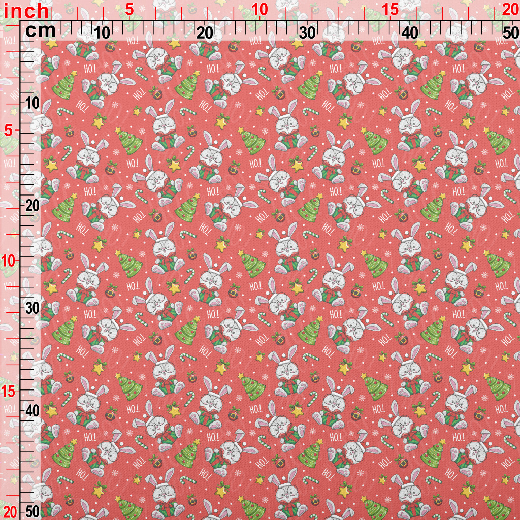 Cartoon Christmas Rabbit Illus Lightweight Cotton Poplin