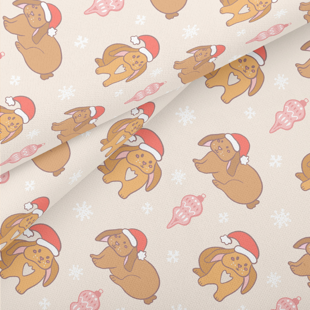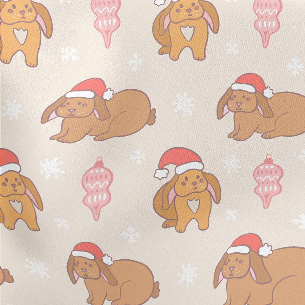 Brown Christmas Bunny Lightweight Cotton Poplin