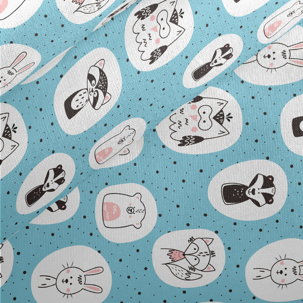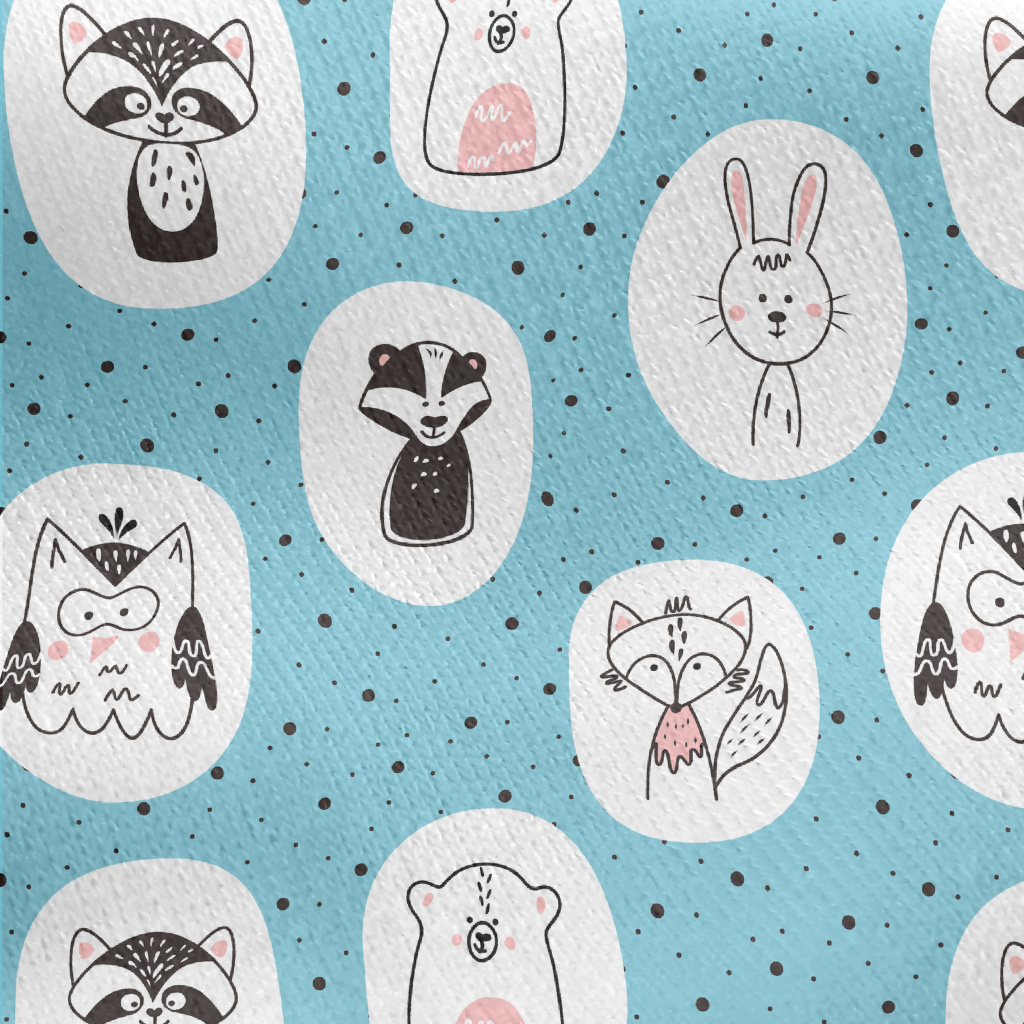 Nordic Style Hand Drawn Animal Jersey Backed Fleece