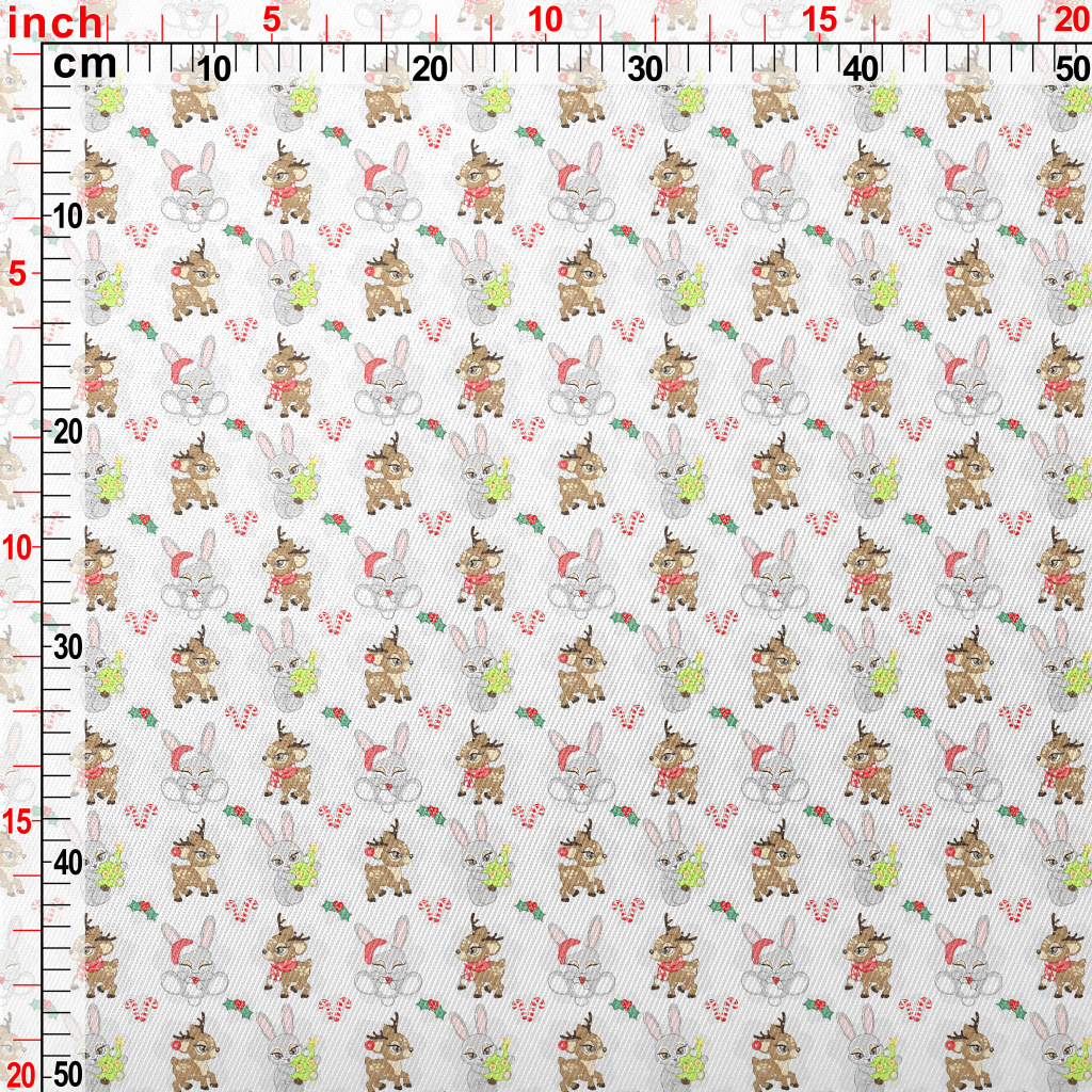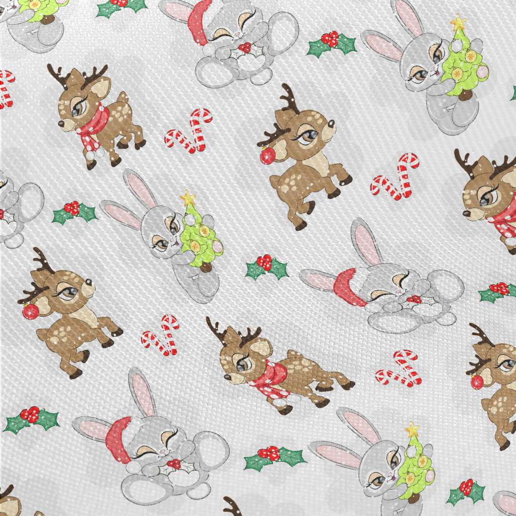 Christmas Reindeer And Rabbit Midweight Cotton Poplin