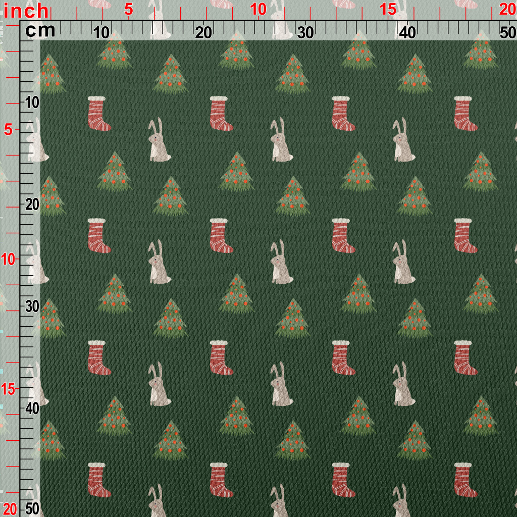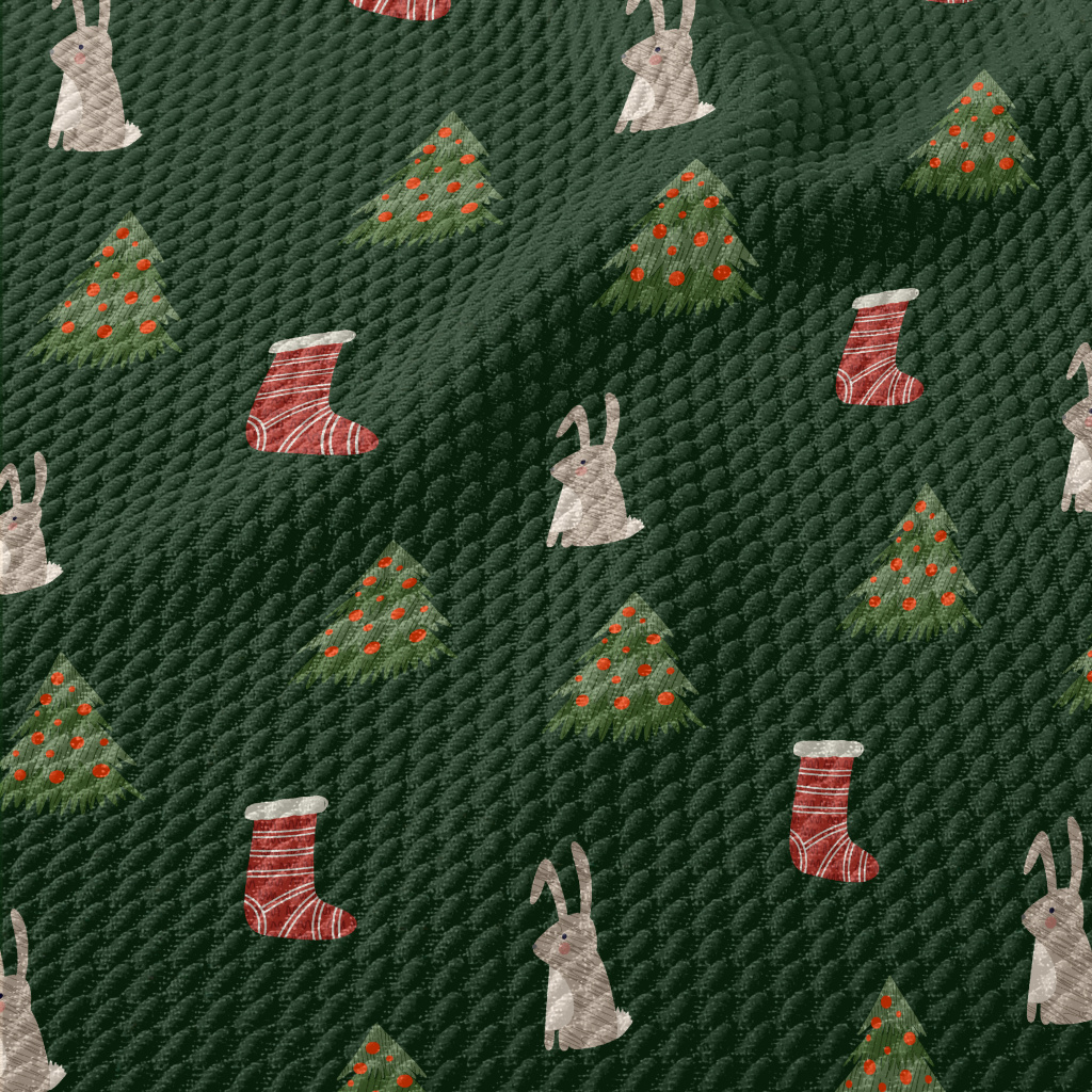 Hand Drawn Christmas Bunny Ill Birdseye Piqué