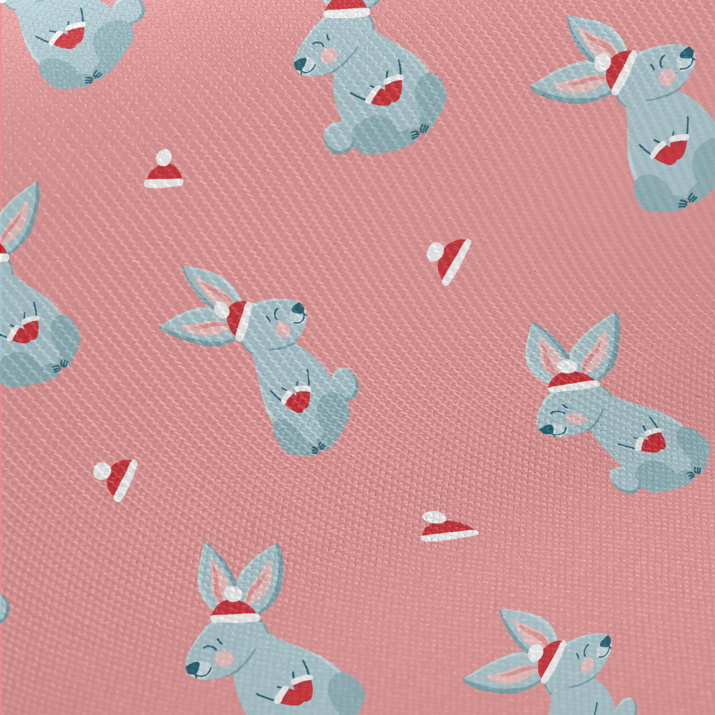 Christmas Red Hat Gray Rabbit Twill