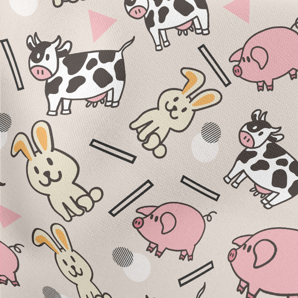 Cartoon Ranch Animals Lightweight Cotton Poplin