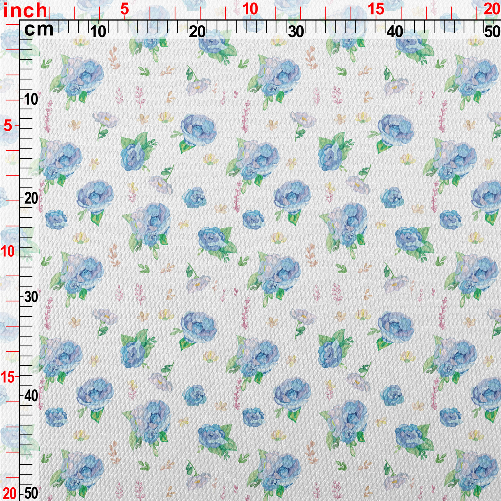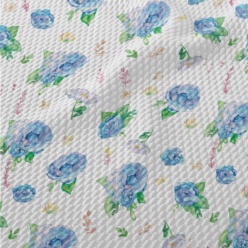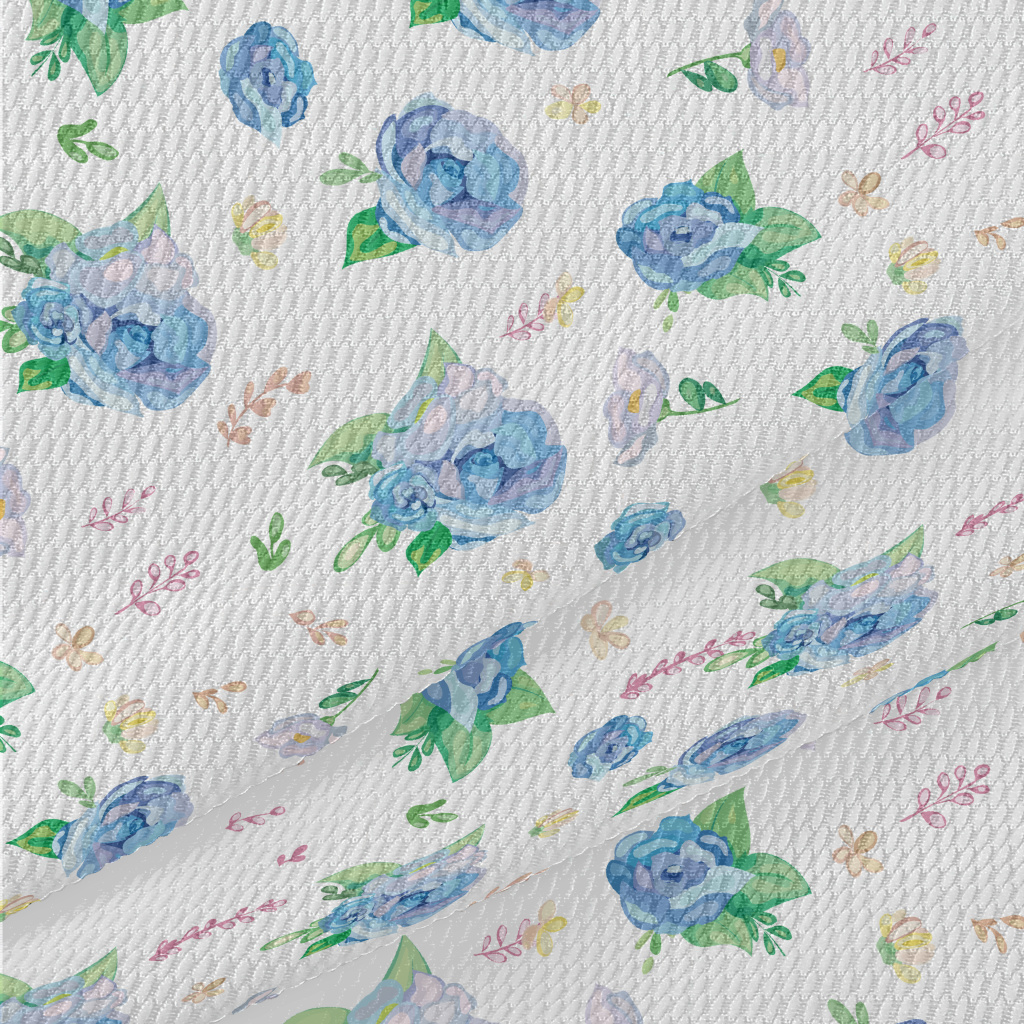 Hand Drawn Watercolor Blue Ros Birdseye Piqué