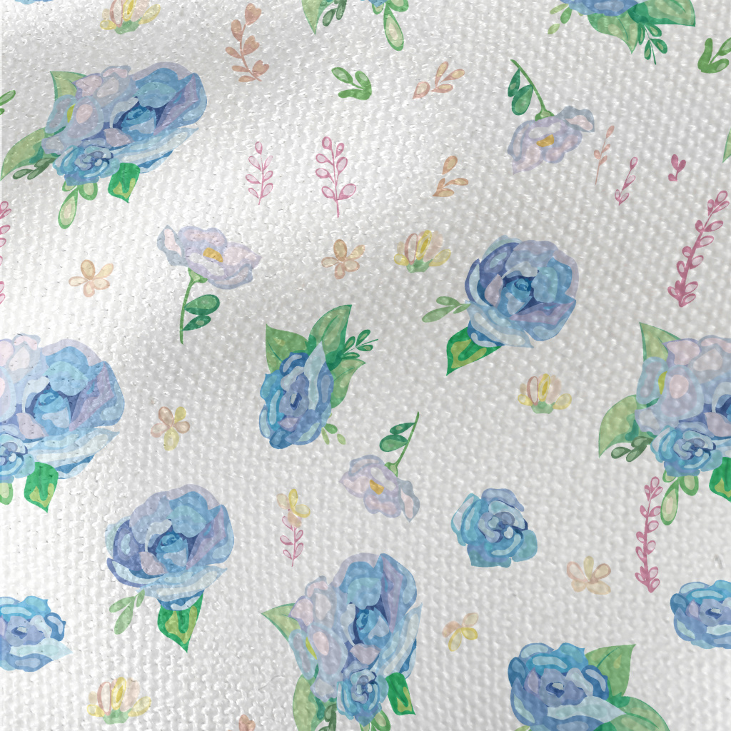 Hand Drawn Watercolor Blue Ros Waterproof Canvas