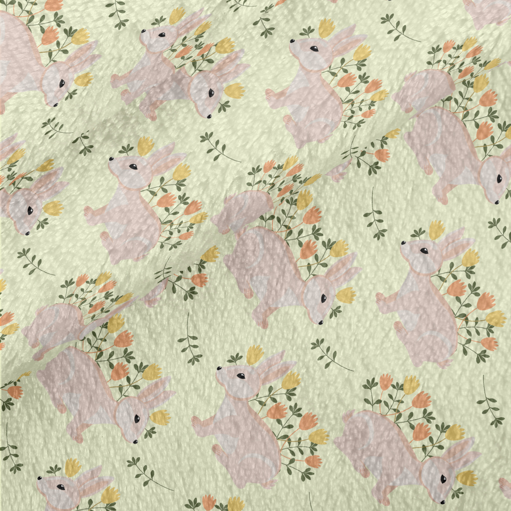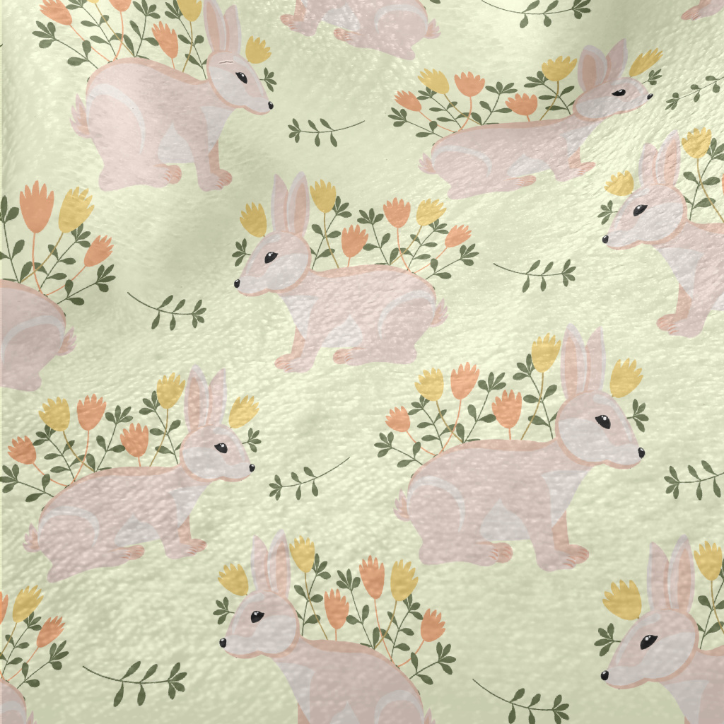 Pink Hare With Flowers Minky
