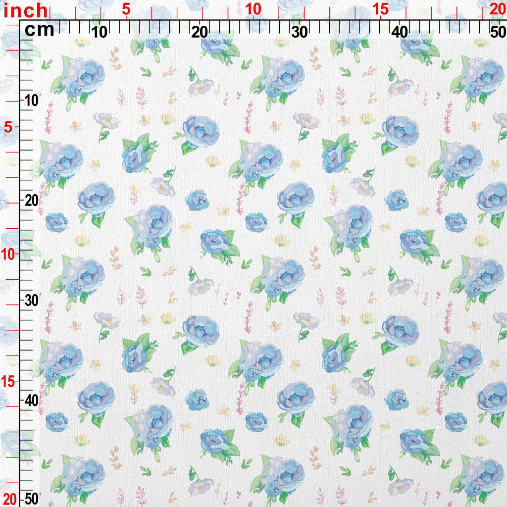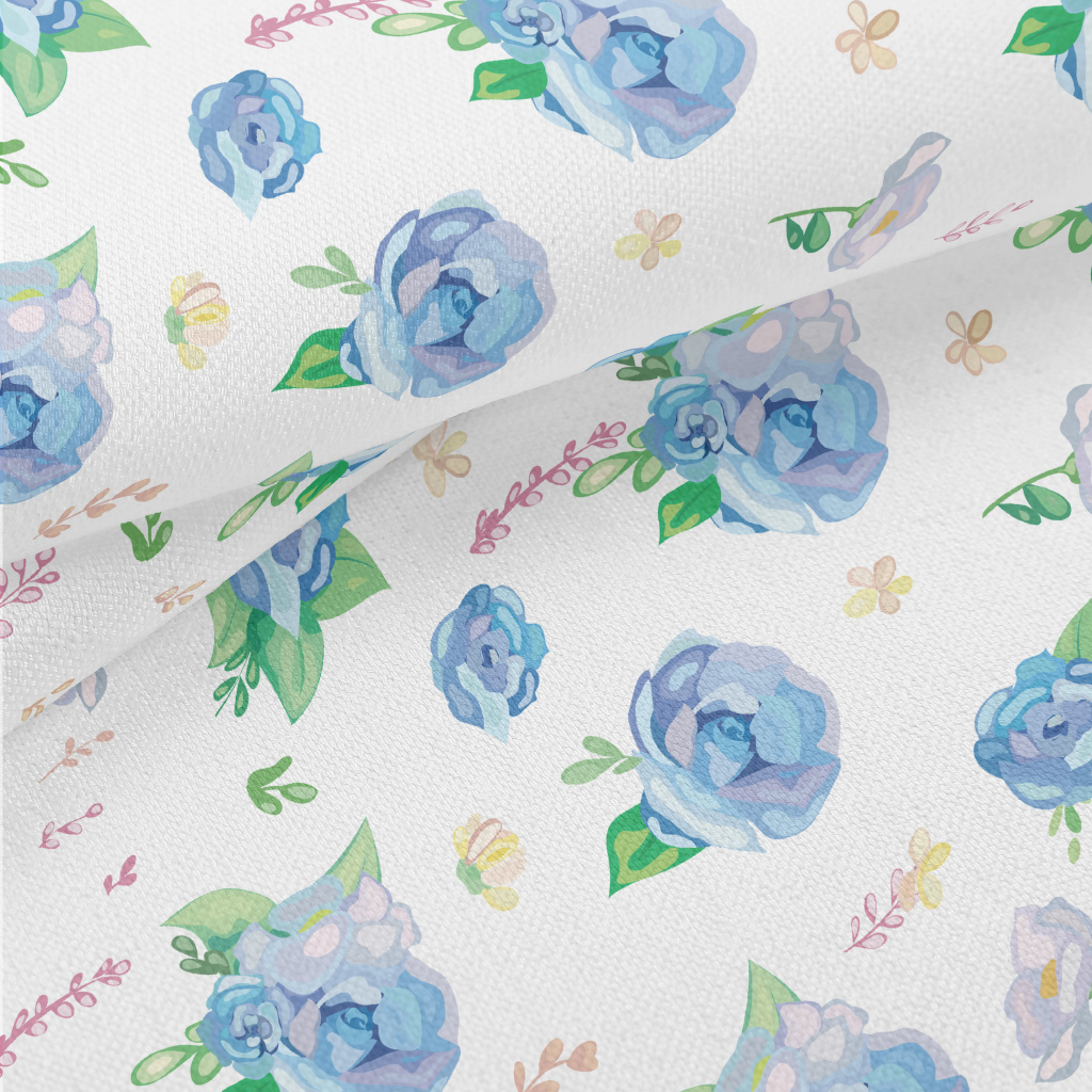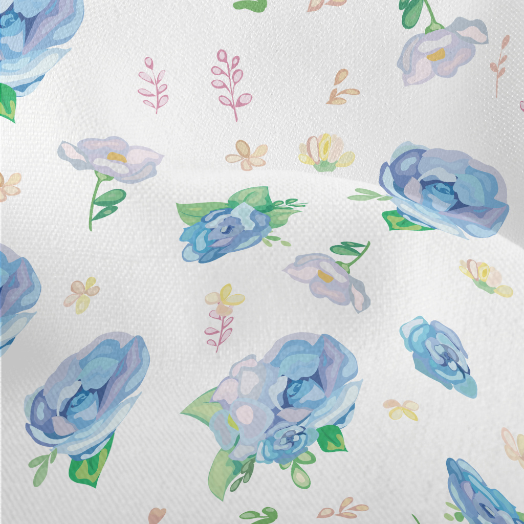 Hand Drawn Watercolor Blue Ros Lightweight Performance Linen
