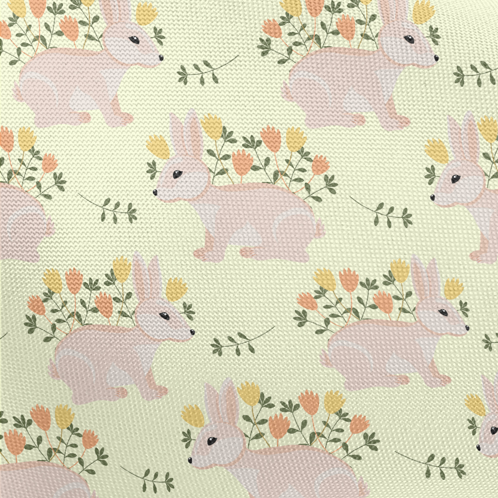 Pink Hare With Flowers Pongee