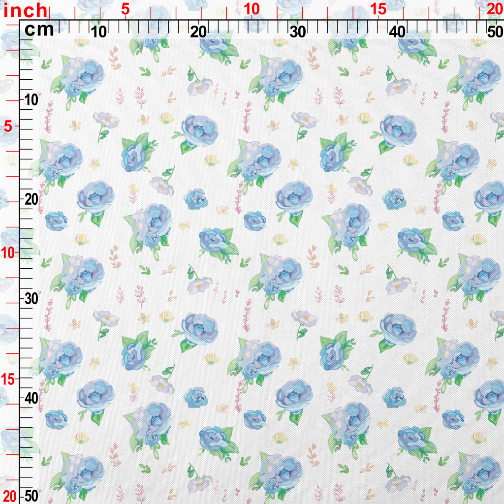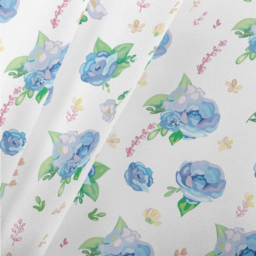 Hand Drawn Watercolor Blue Ros Pongee