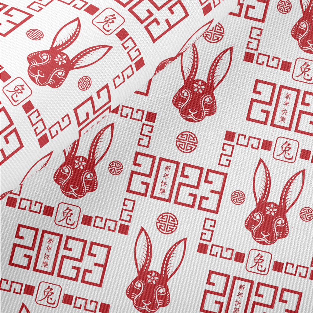 Happy New Year Of The Rabbit Midweight Cotton Poplin