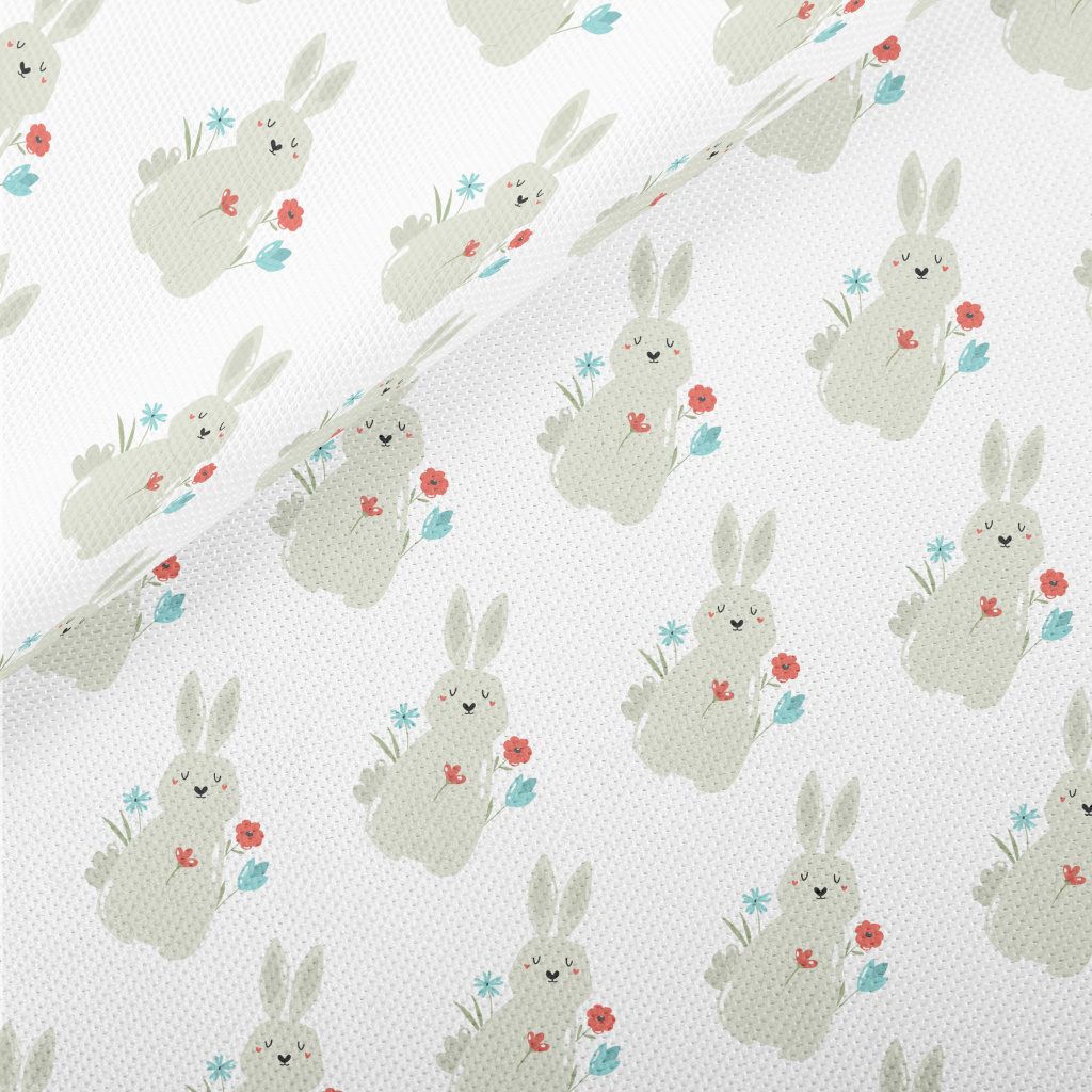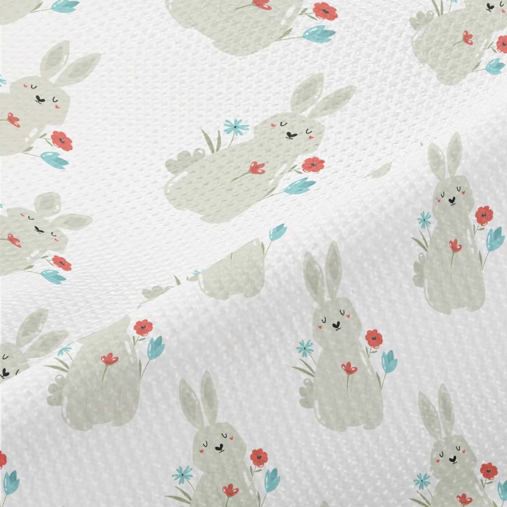Rabbit And Flowers Decoration Piqué