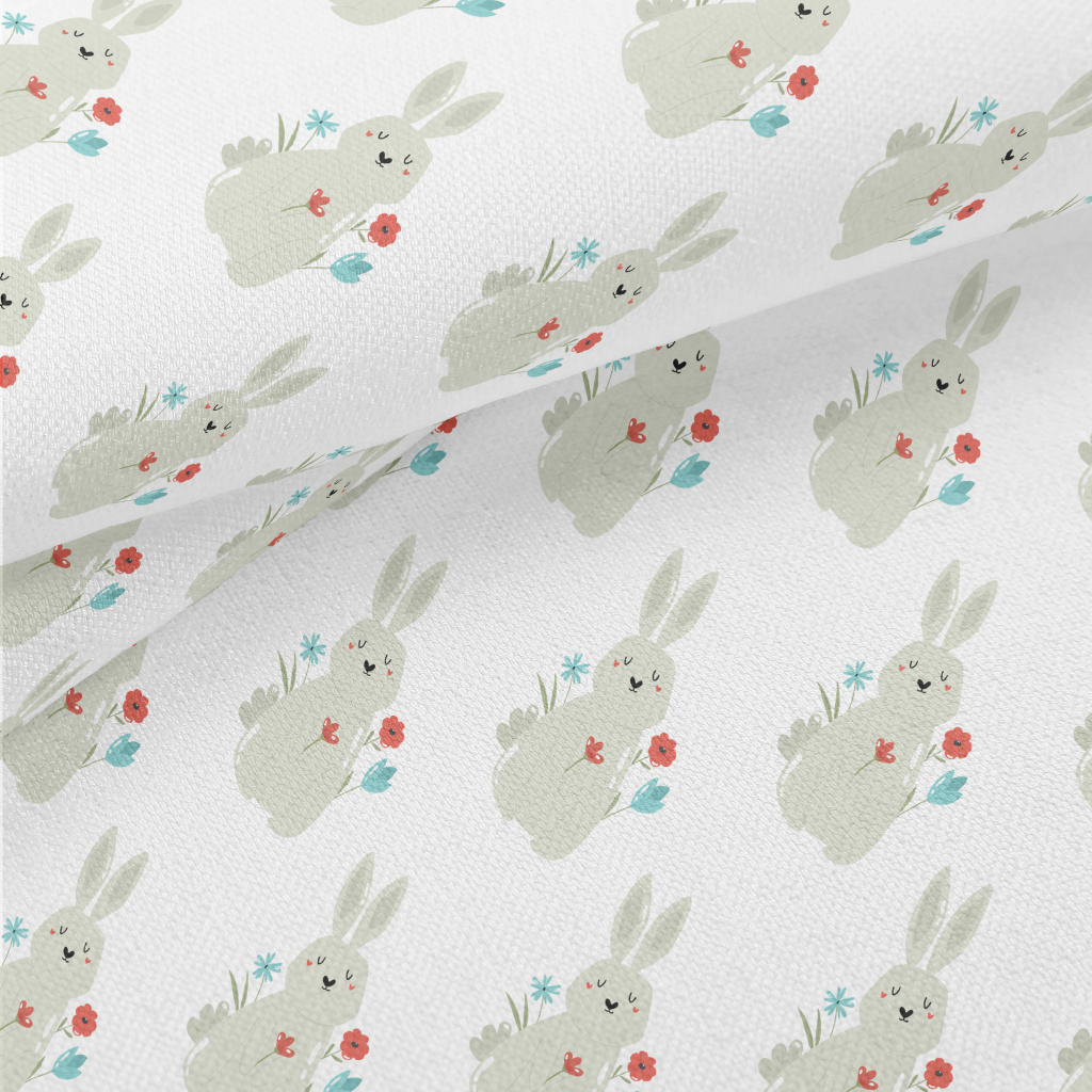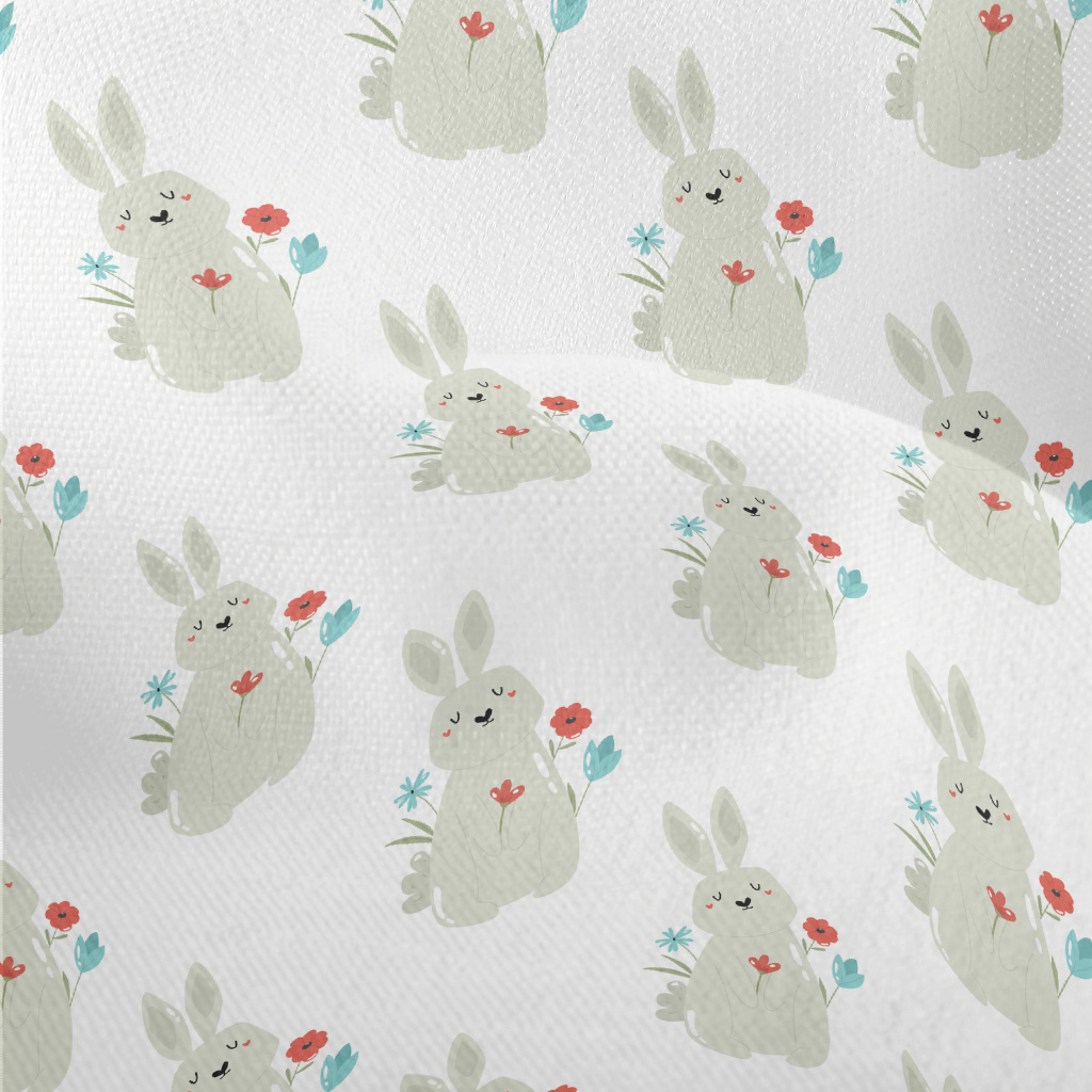 Rabbit And Flowers Decoration Lightweight Performance Linen