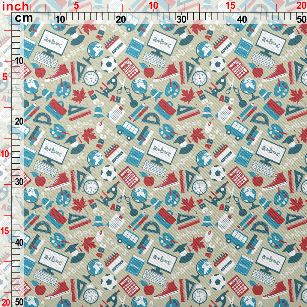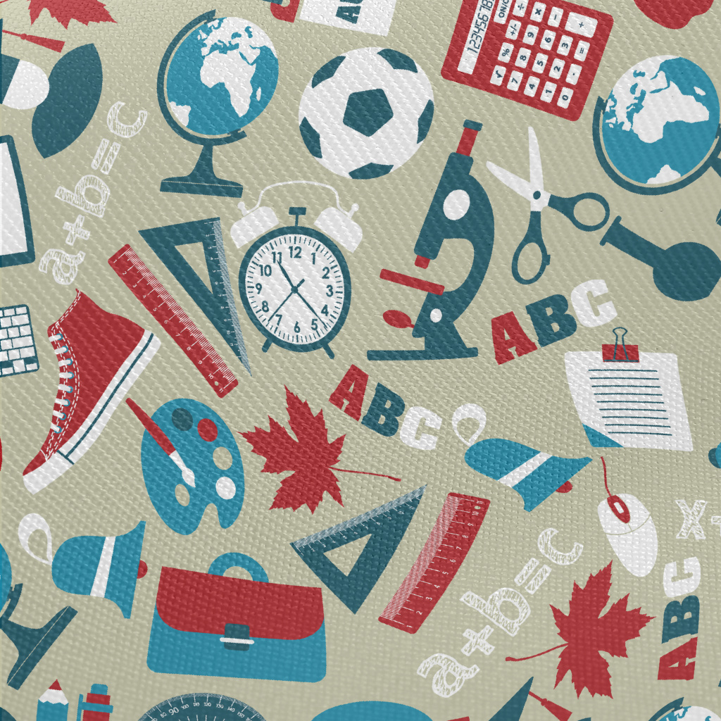 School Items Pattern Twill