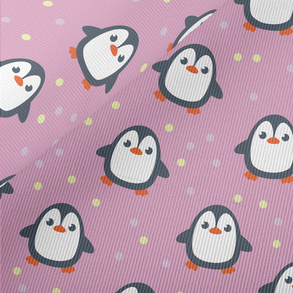 Penguins With Colored Dots Twill