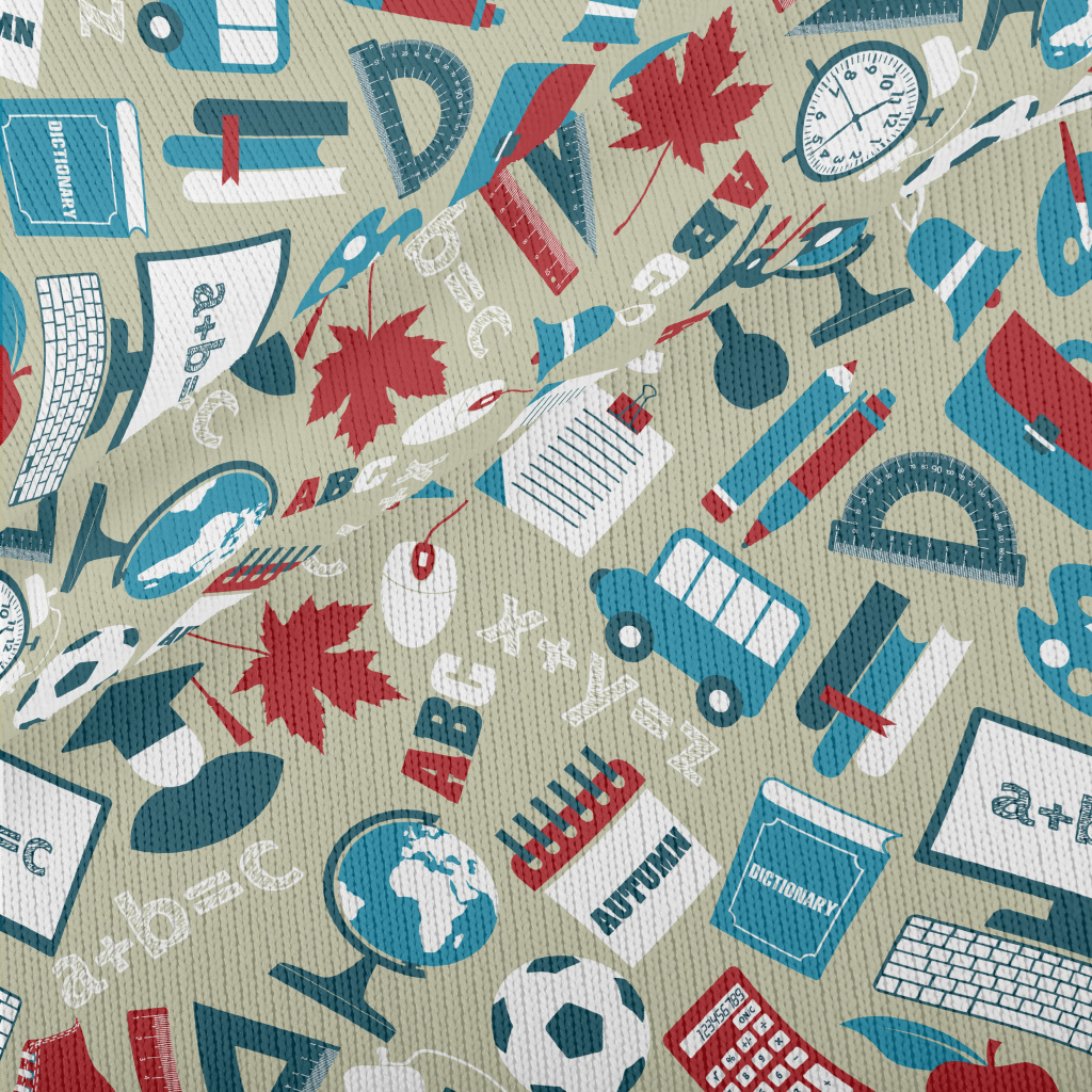 School Items Pattern Stretch Jersey