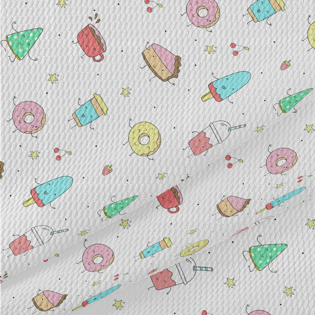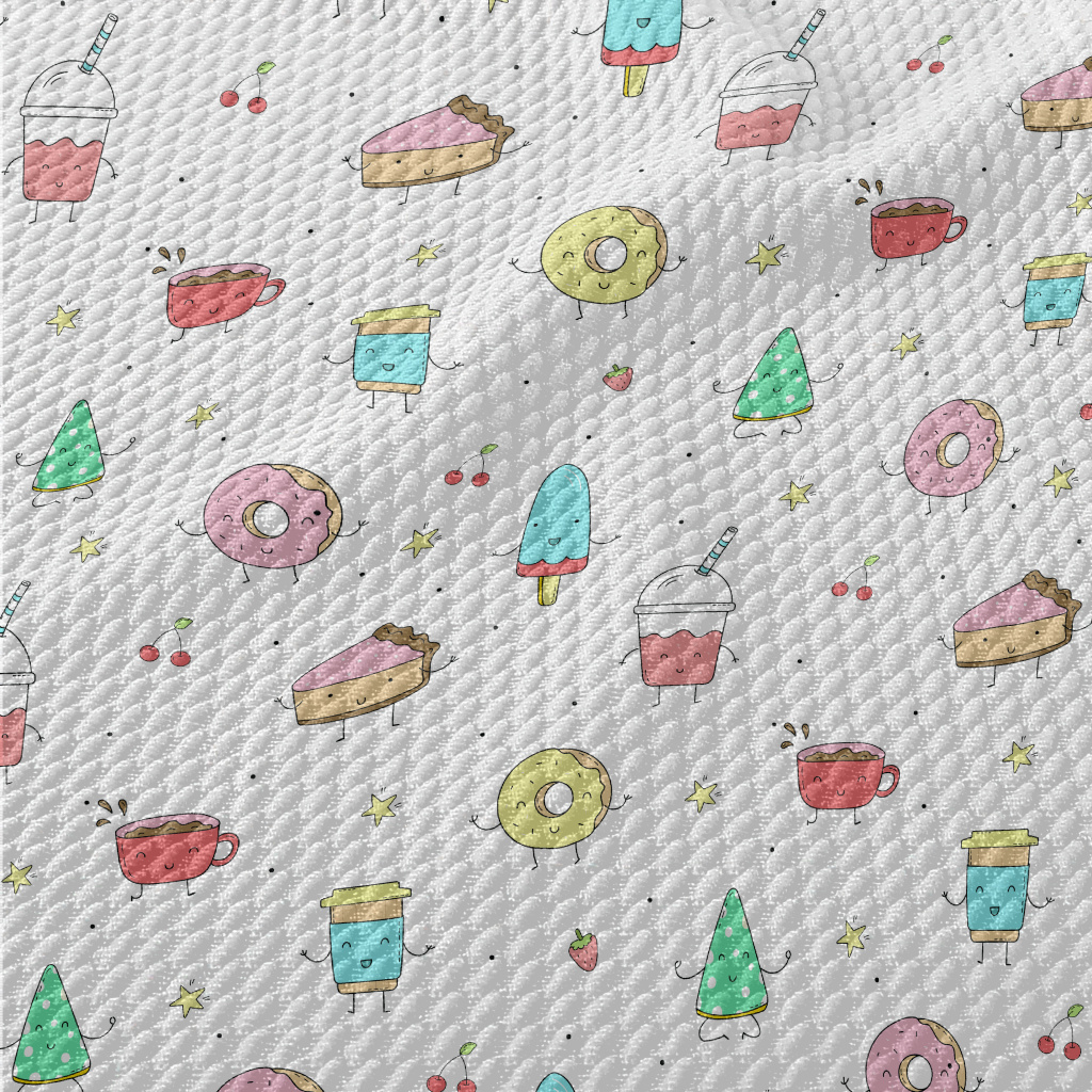 Funny Cartoon Food Birdseye Piqué