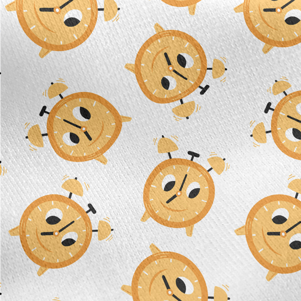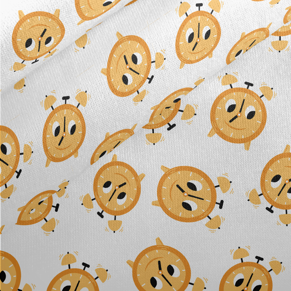 Cartoon Expression Alarm Clock Jersey Backed Fleece